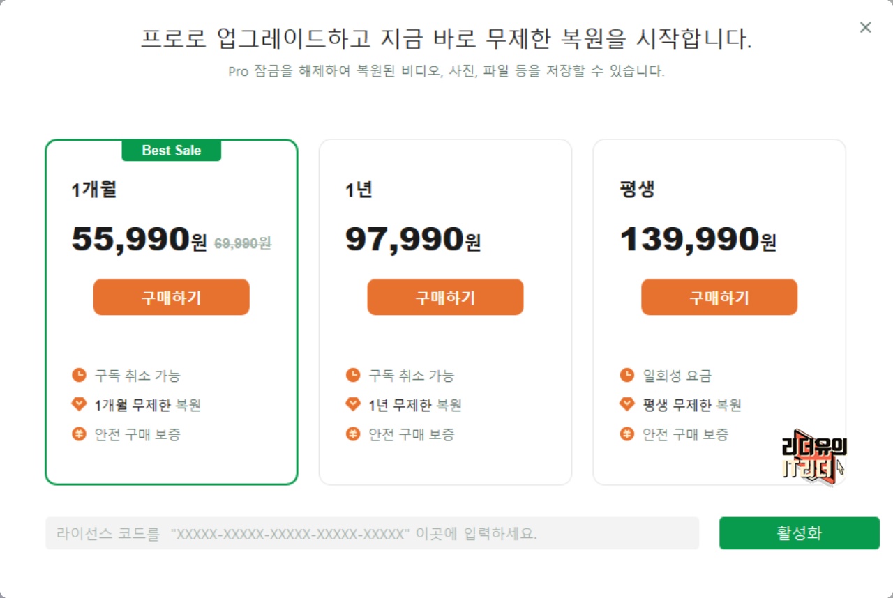 참고로 이지어스 EaseUS Fixo 프로그램 가격은 1개월 55,900원, 1년 97,990원, 평생 139,990원 입니다. 무료 데모로 확인해 보시고 필요한 상황에 맞게 구독권을 사용하시면 됩니다.