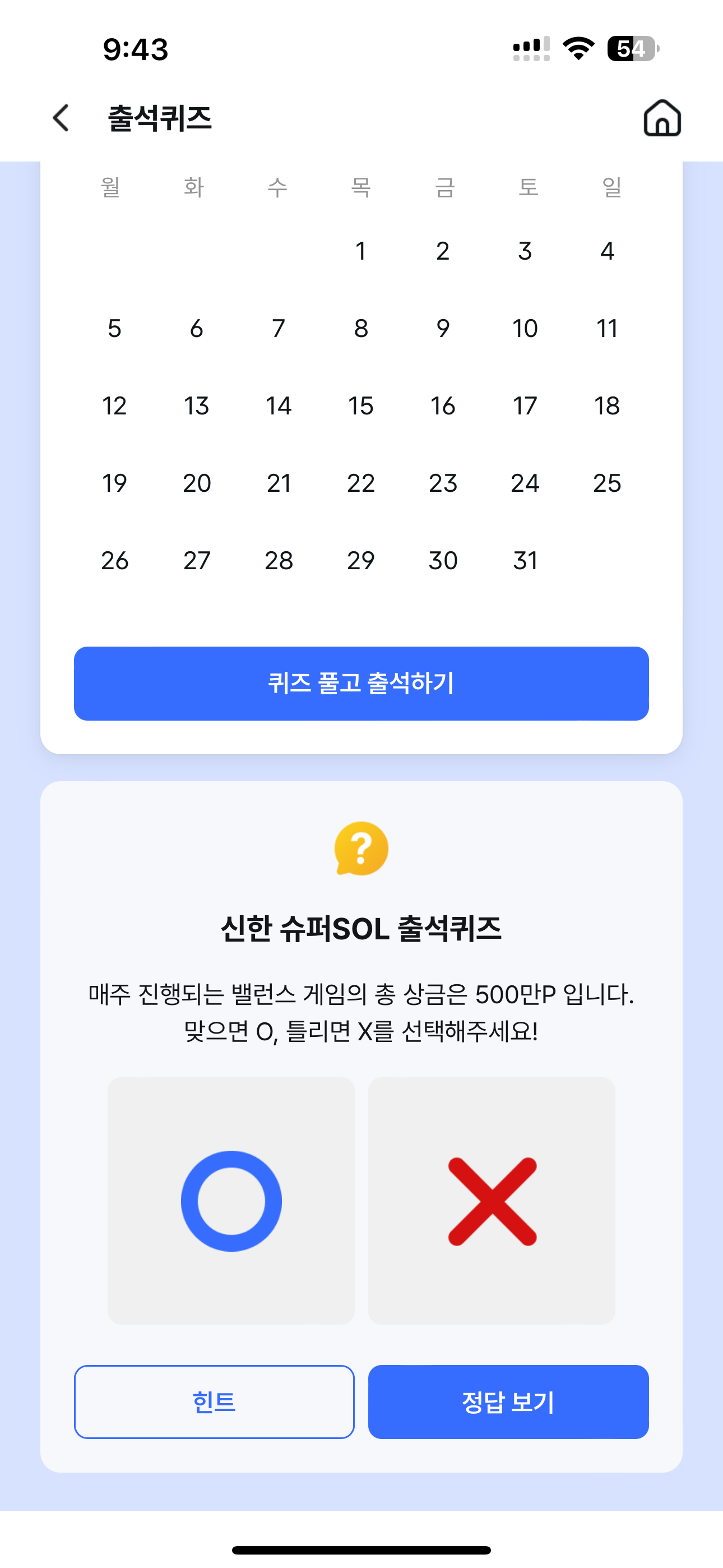 신한 슈퍼SOL 출석퀴즈 정답은 O 입니다