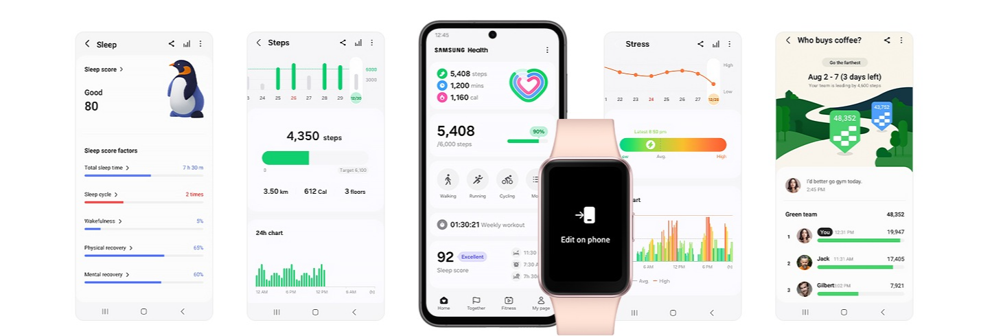삼성 갤럭시핏3는 삼성 헬스 앱을 통해 관리가 됩니다. 삼성 스마트워치의 기본 기능을 다하고 있습니다.