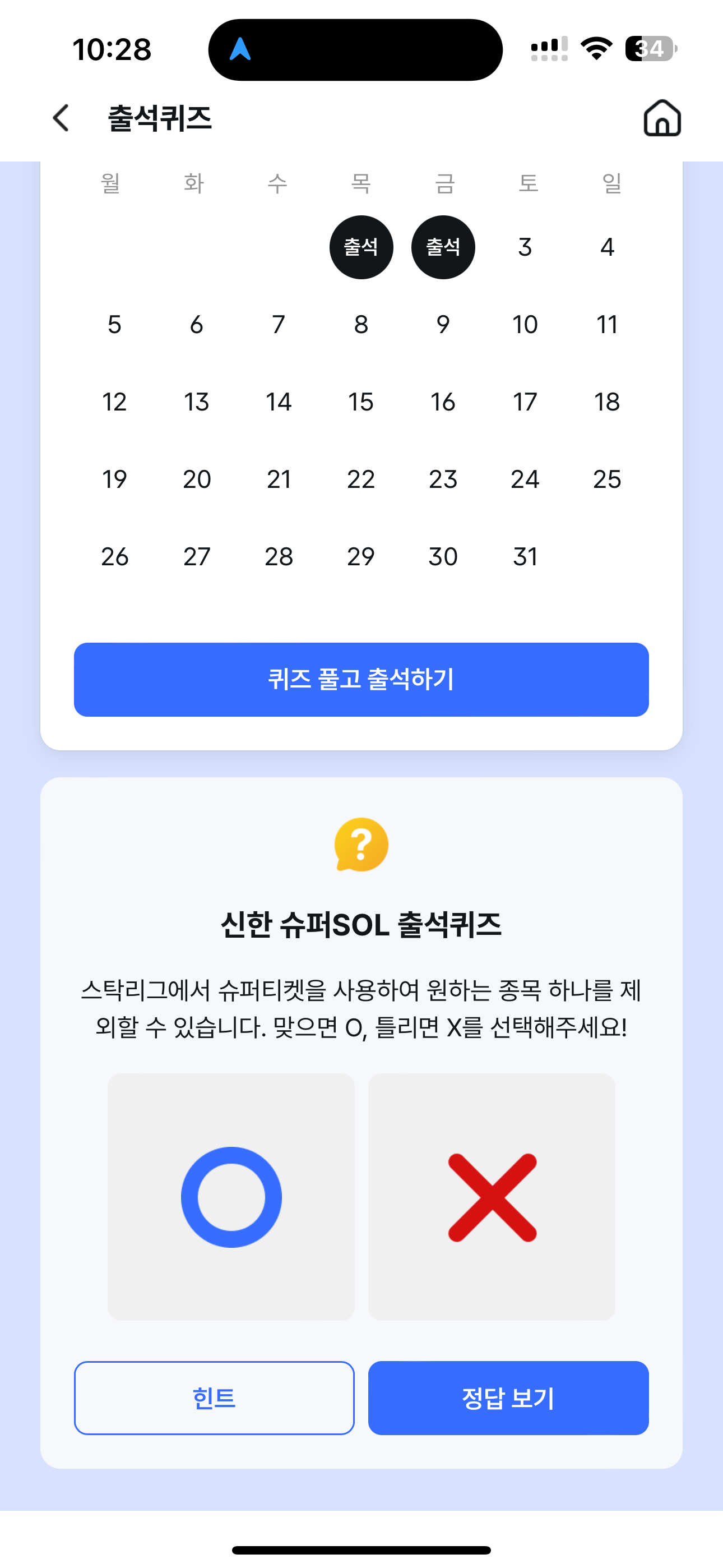 신한 슈퍼SOL 출석퀴즈 정답은 O 입니다