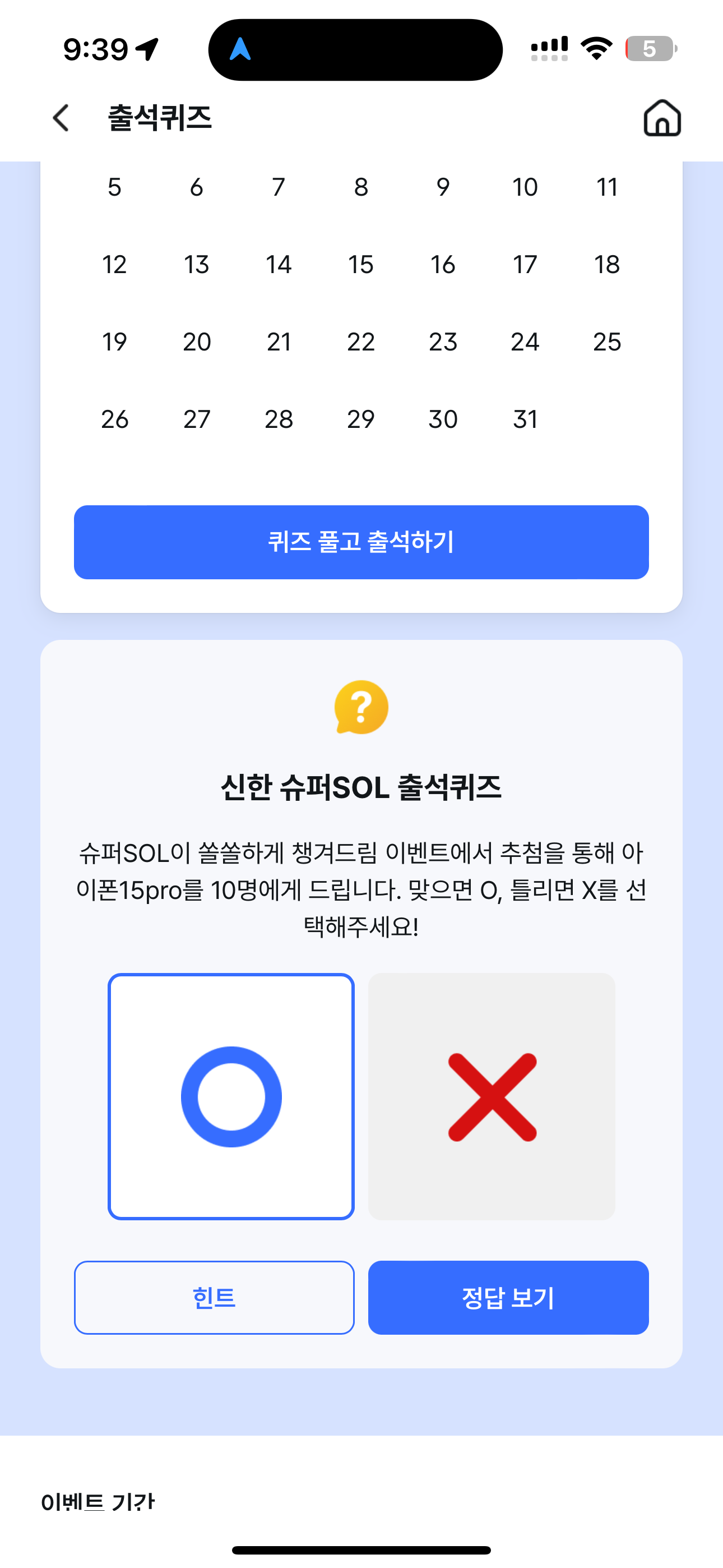 신한 슈퍼SOL 출석퀴즈 정답은 O 입니다