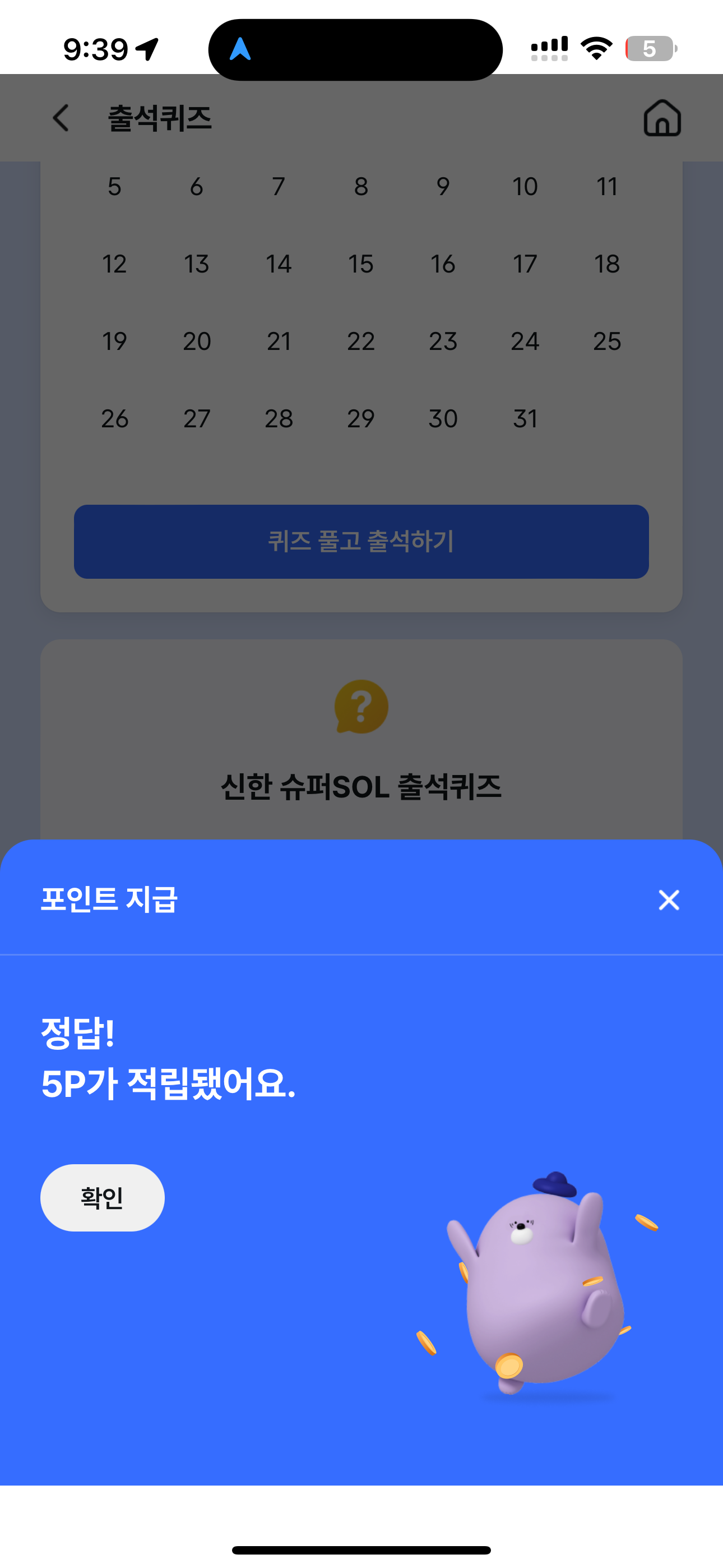 5P를 받았습니다. 포인트는 현금 전환 가능하니 꼭 받으시고요. 여러분의 재테크를 응원합니다