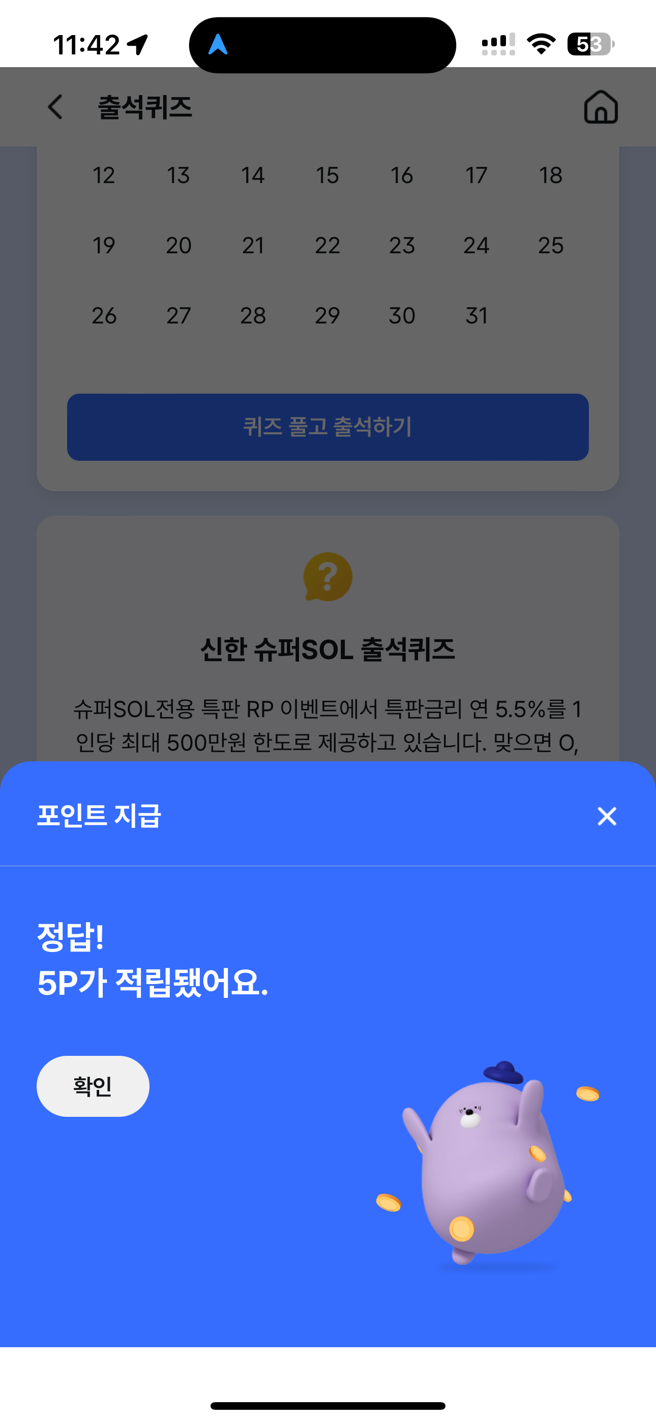 신한 슈퍼SOL 출석퀴즈 정답은 O 입니다