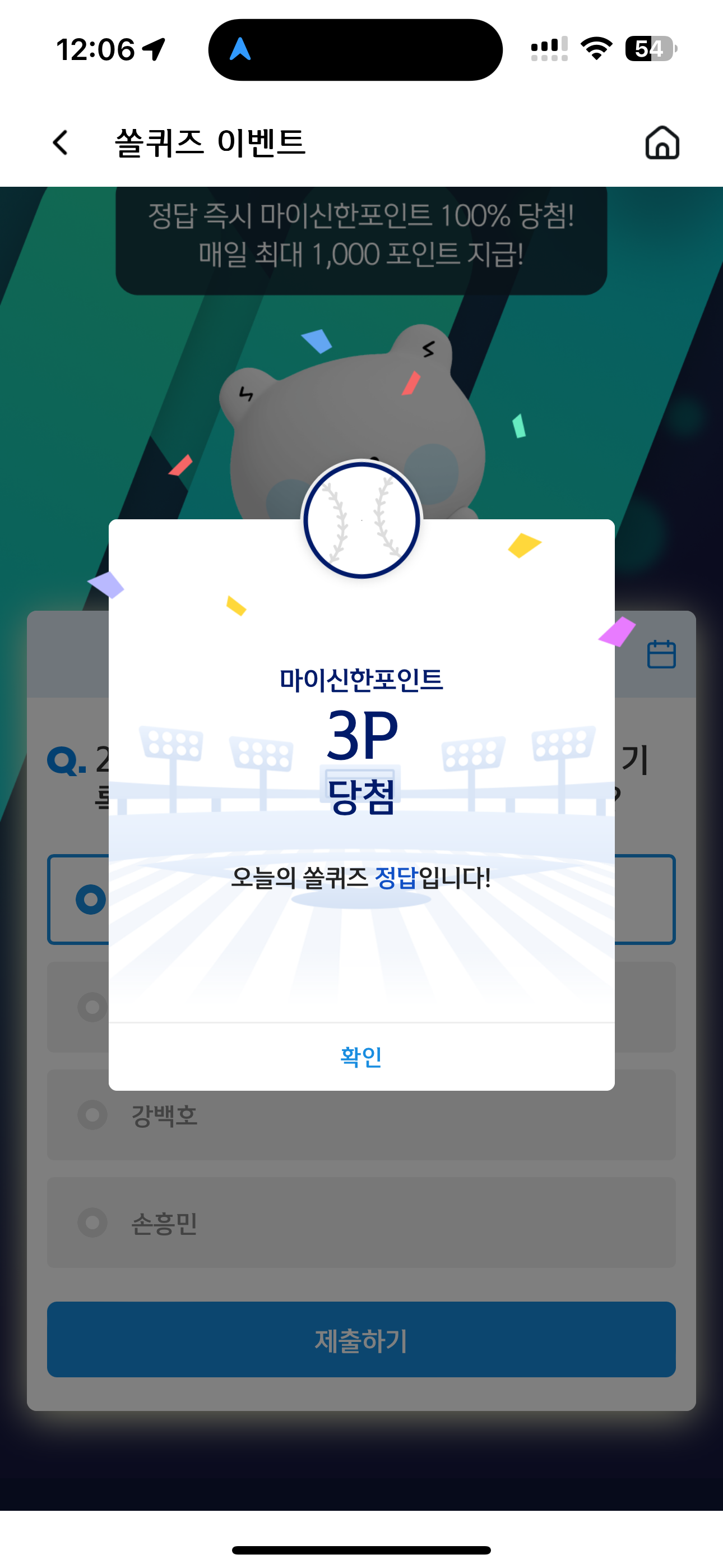 신한 슈퍼SOL 야구/상식 쏠퀴즈 정답은 박영현 입니다