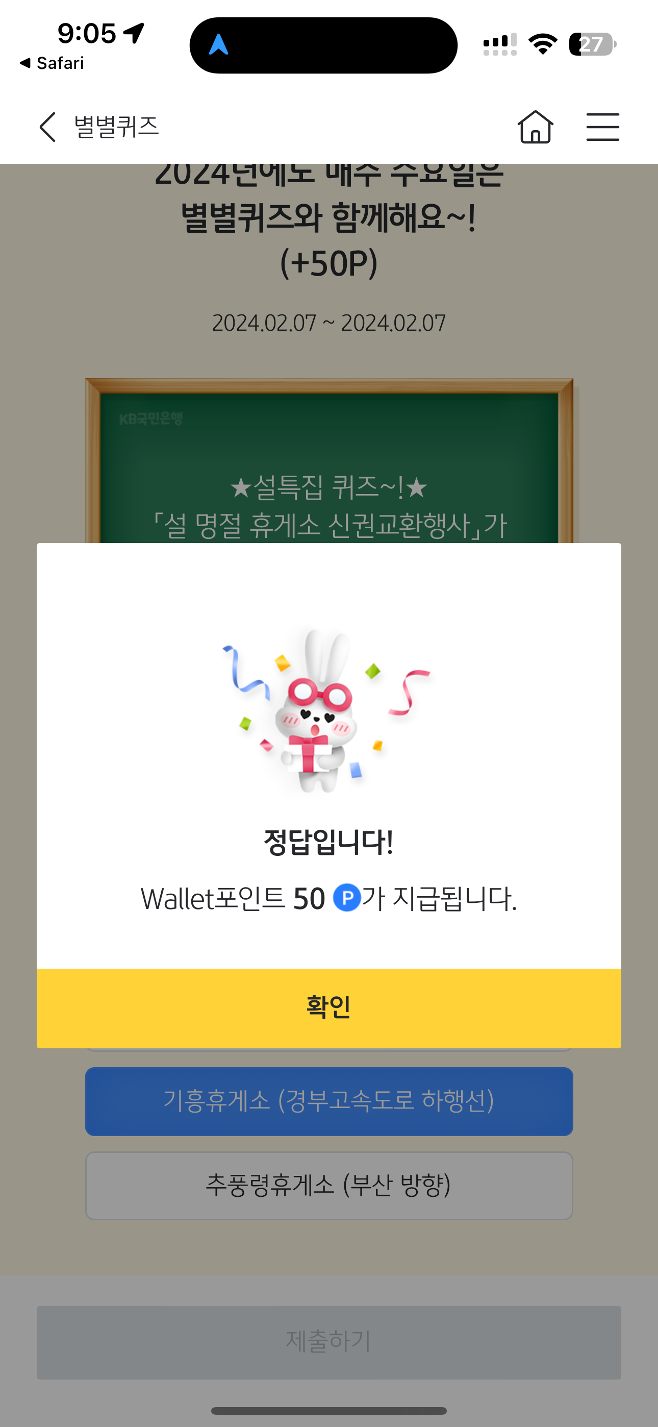 KB스타뱅킹 별별퀴즈 2월 7일 문제입니다.