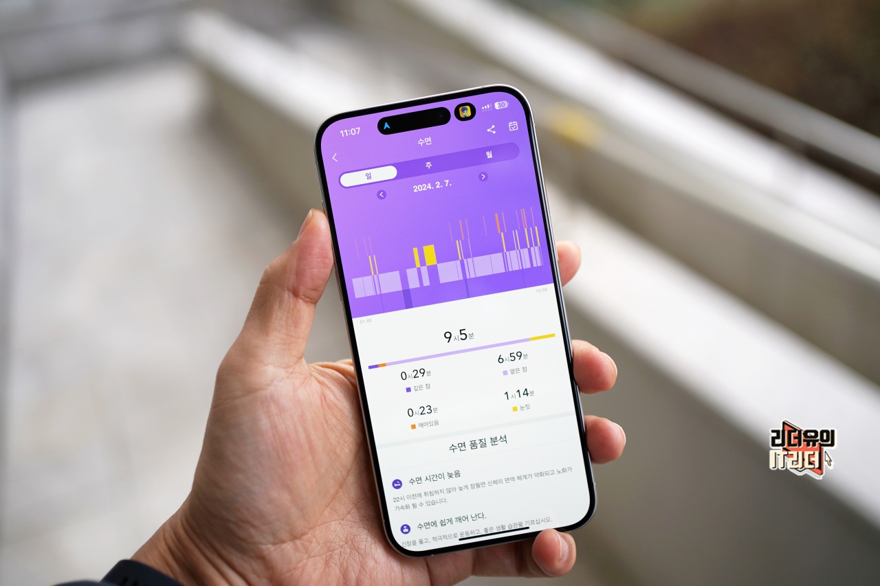 티씨어즈 스마트워치 Z8 앱에서 보는 수면 분석입니다. 깊은잠 29분, 옅은 잠 6시 59분으로 수면의 질이 좋지는 않네요. 수면 품질 분석까지 해주니 참고해 두세요
