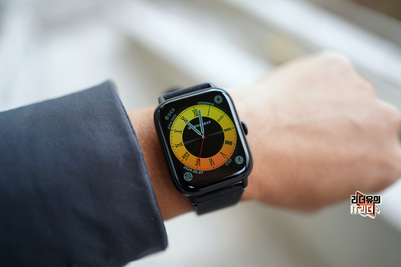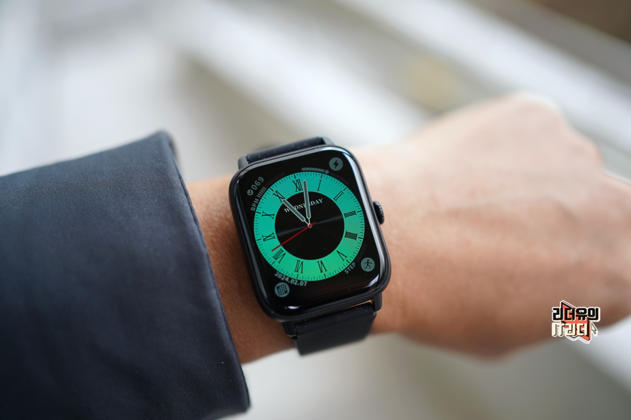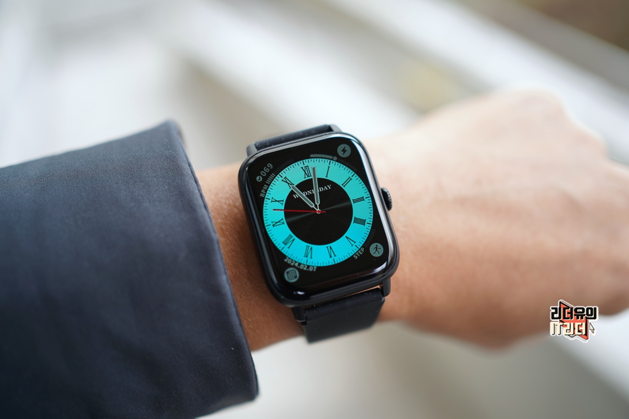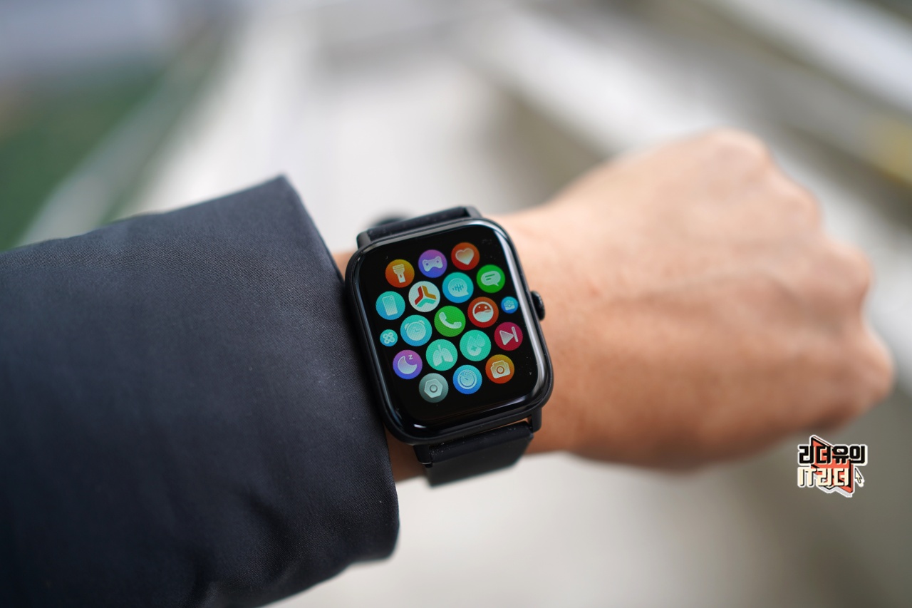 티씨어즈 스마트워치 Z8은 얼핏보면 애플워치를 닮은 사각형의 디자인을 하고 있습니다. 1.91인치 디스플레이이고 색감도 좋습니다.