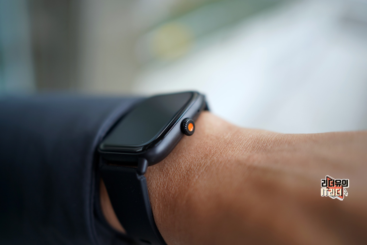 오른쪽에는 디지털 크라운이 하나 있습니다. 다이얼로 돌릴 수 있고 버튼으로 눌러서 컨트롤을 지원합니다.