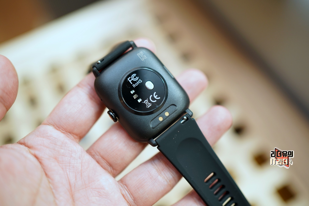 티씨어즈 스마트워치 Z8 안쪽면을 보면 포고핀 방식의 충전 단자가 있어 가볍게 부착해서 충전을 할 수 있습니다.