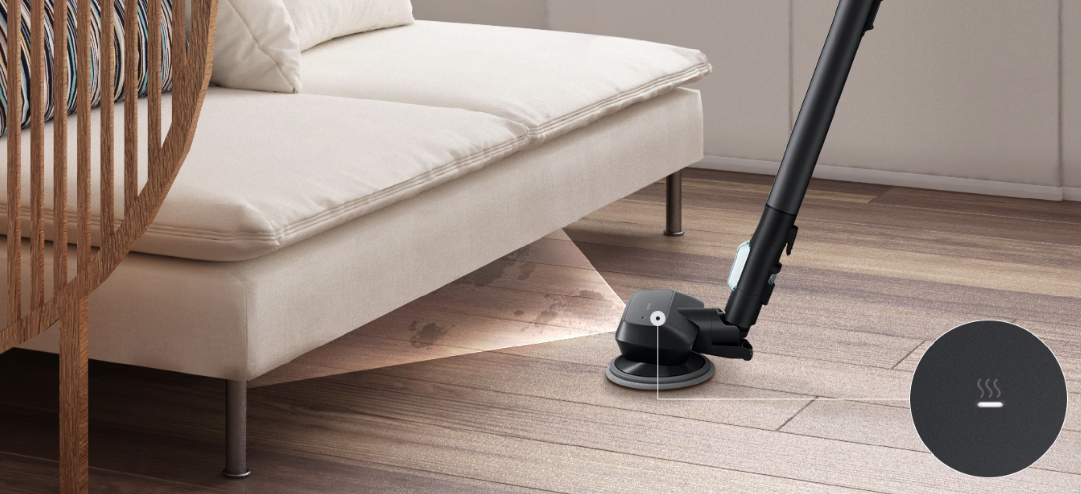 삼성 비스포크 제트 AI 스틱 무선청소기는 약 55℃ 고온수를 바닥의 오염물에 분사해 효과적으로 청소를 할 수 있는 고온 세척 브러시를 가지고 있습니다.