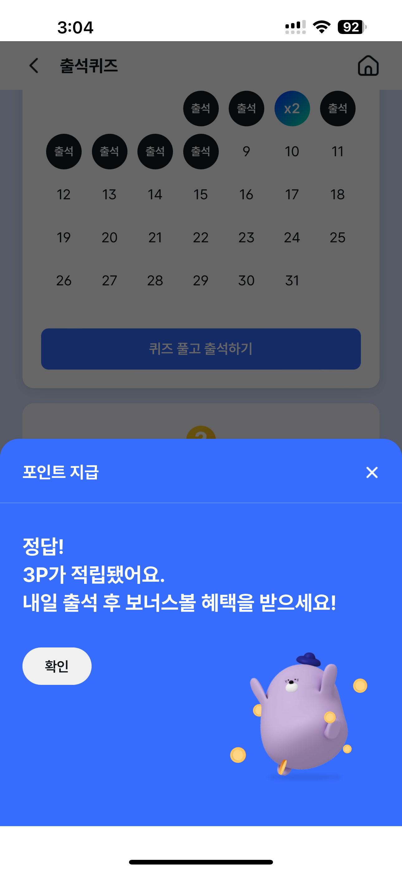 3P를 받았습니다. 포인트는 현금 전환이 가능하니 꼭 받으시고요. 여러분의 재테크를 응원합니다