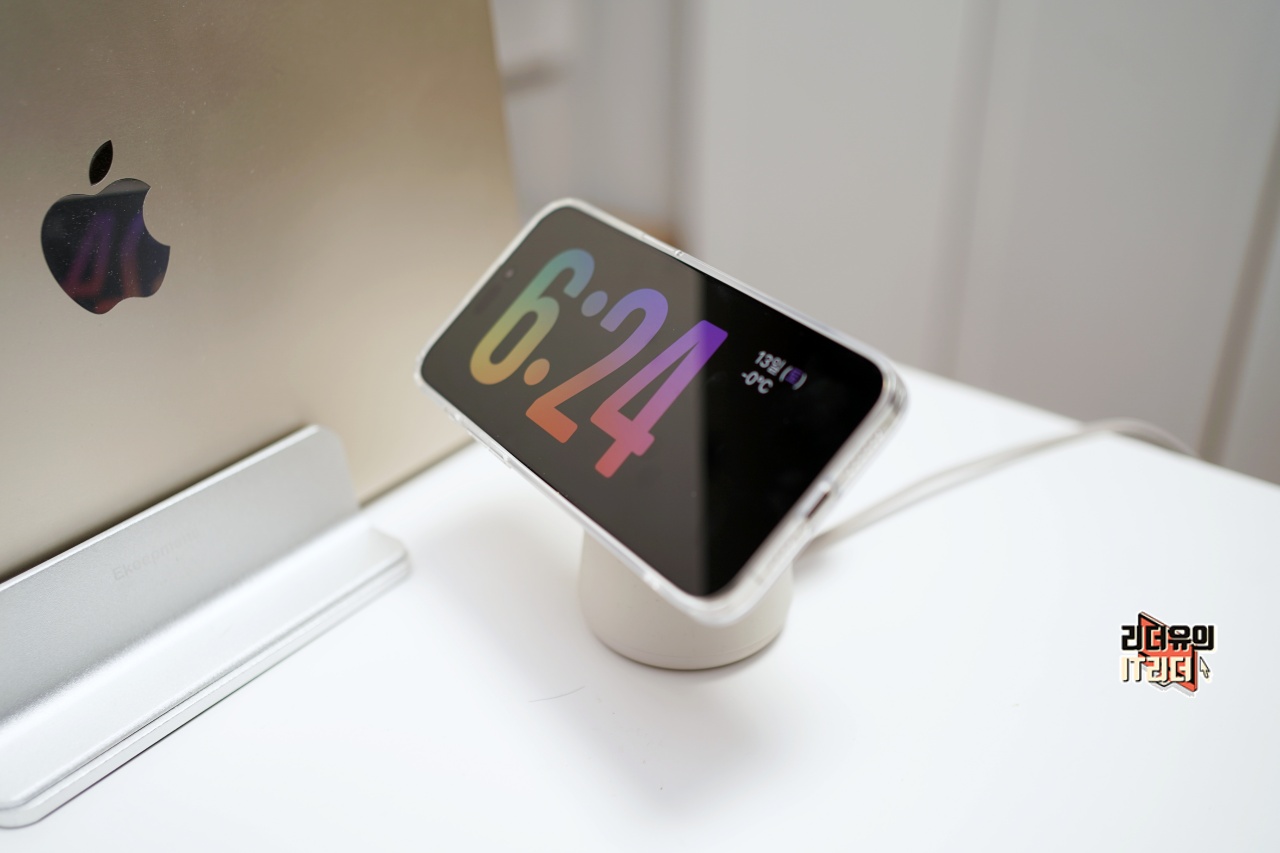 맥세이프 충전기와 체결된 느낌도 좋습니다. 자성도 좋아서 아이폰15 프로 맥스의 맥세이프 액세서리를 제대로 사용할 수 있습니다. 정품과 큰 차이 없다고 보셔도 됩니다.