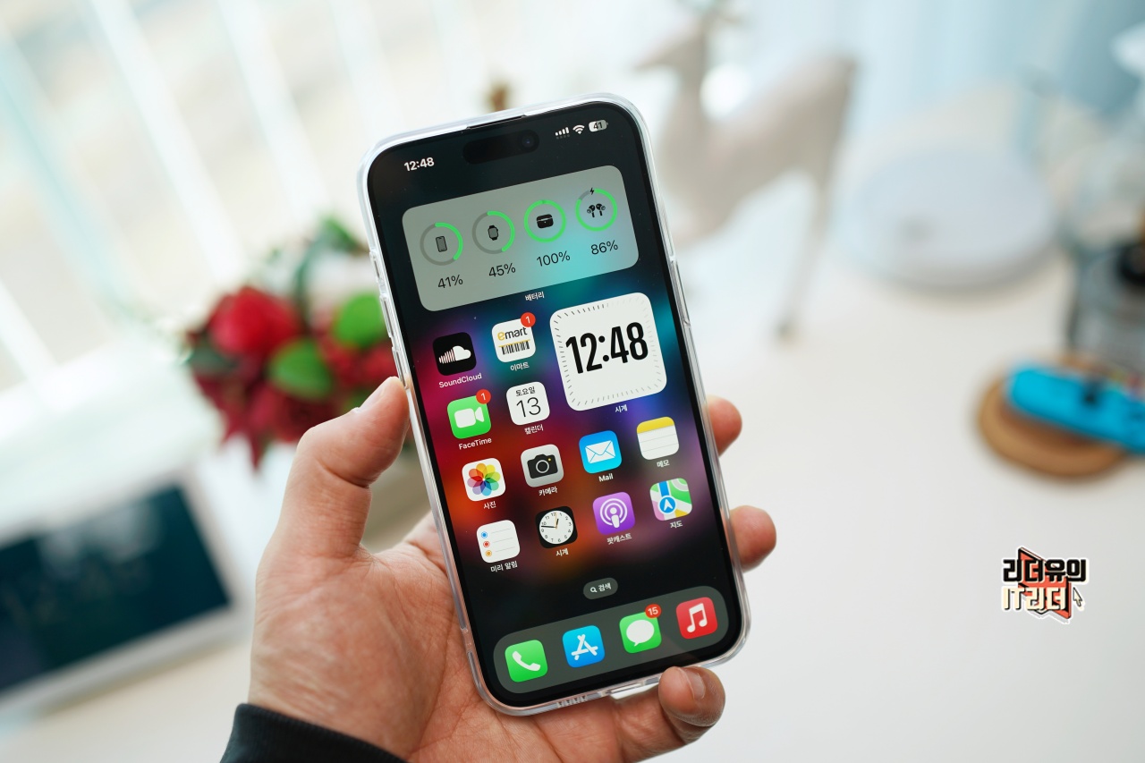유그린 아이폰15 프로 맥스 맥세이프 투명 케이스 장착 모습