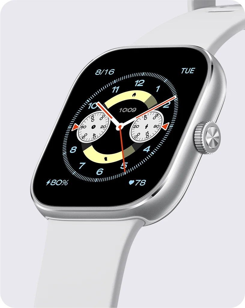 샤오미 레드미 워치4는 전작보다 디스플레이 면적이 26% 증가한 1.97인치 AMOLED 디스플레이를 탑재하고 있습니다. 60Hz 주사율과 600니트 밝기로 선명한 화면을 볼 수 있습니다. 그리고 AOD도 지원해 항상 시계 화면을 볼 수 있습니다.