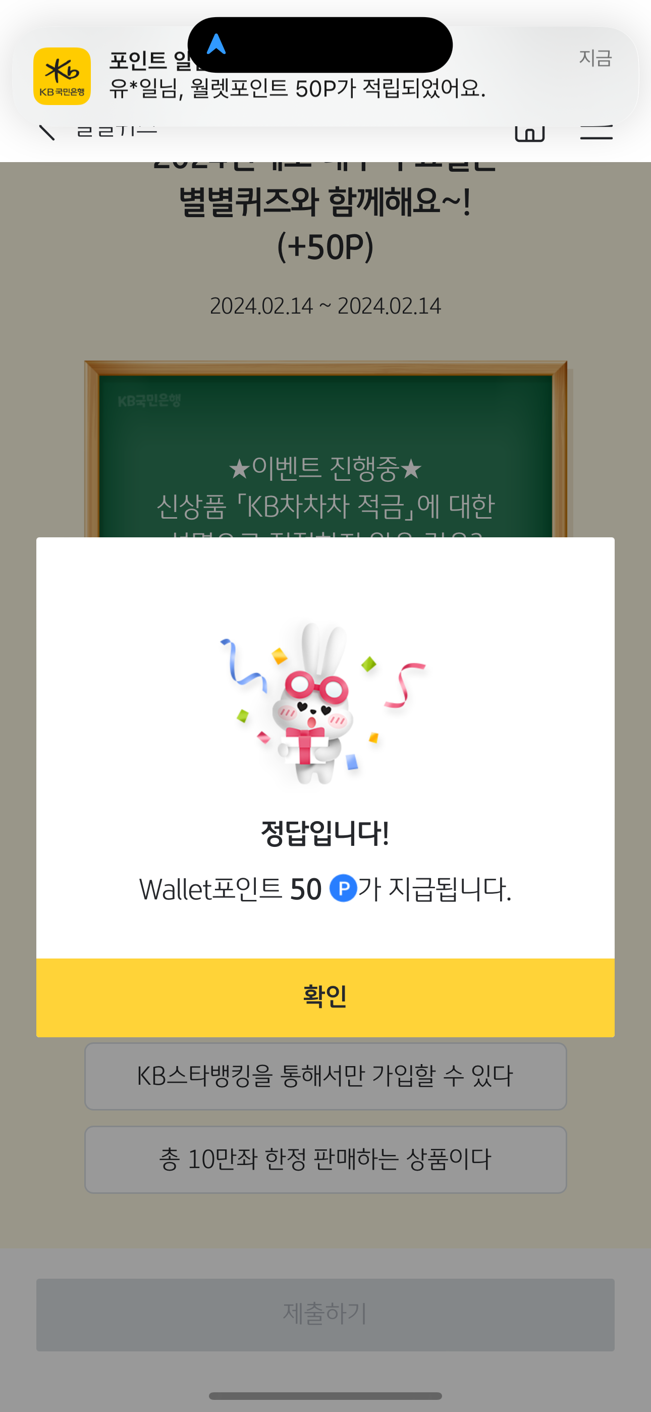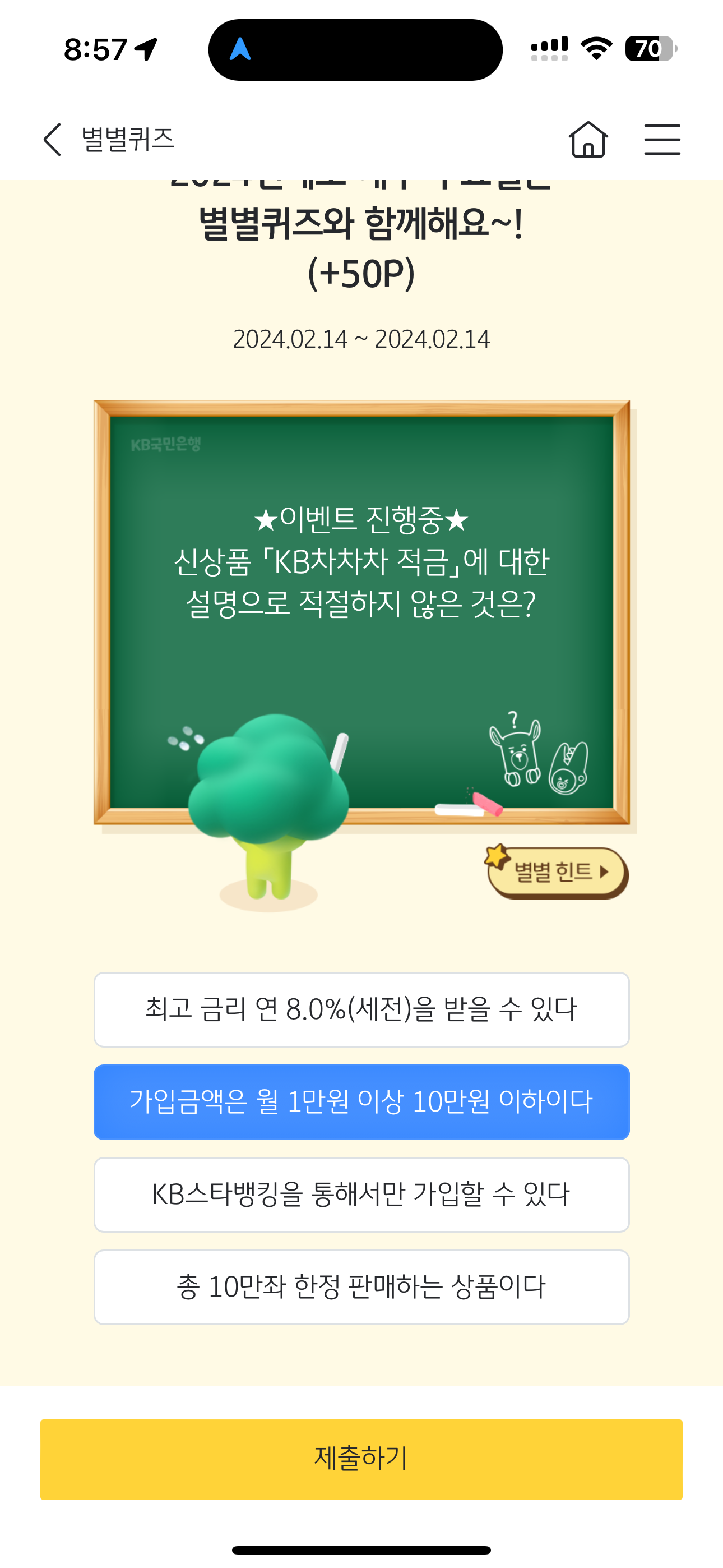 KB스타뱅킹 별별퀴즈 2월 14일 문제입니다.
