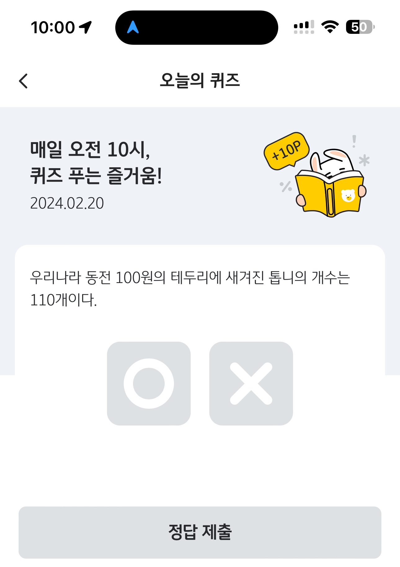 KB Pay 오늘의 퀴즈 정답은 O 입니다