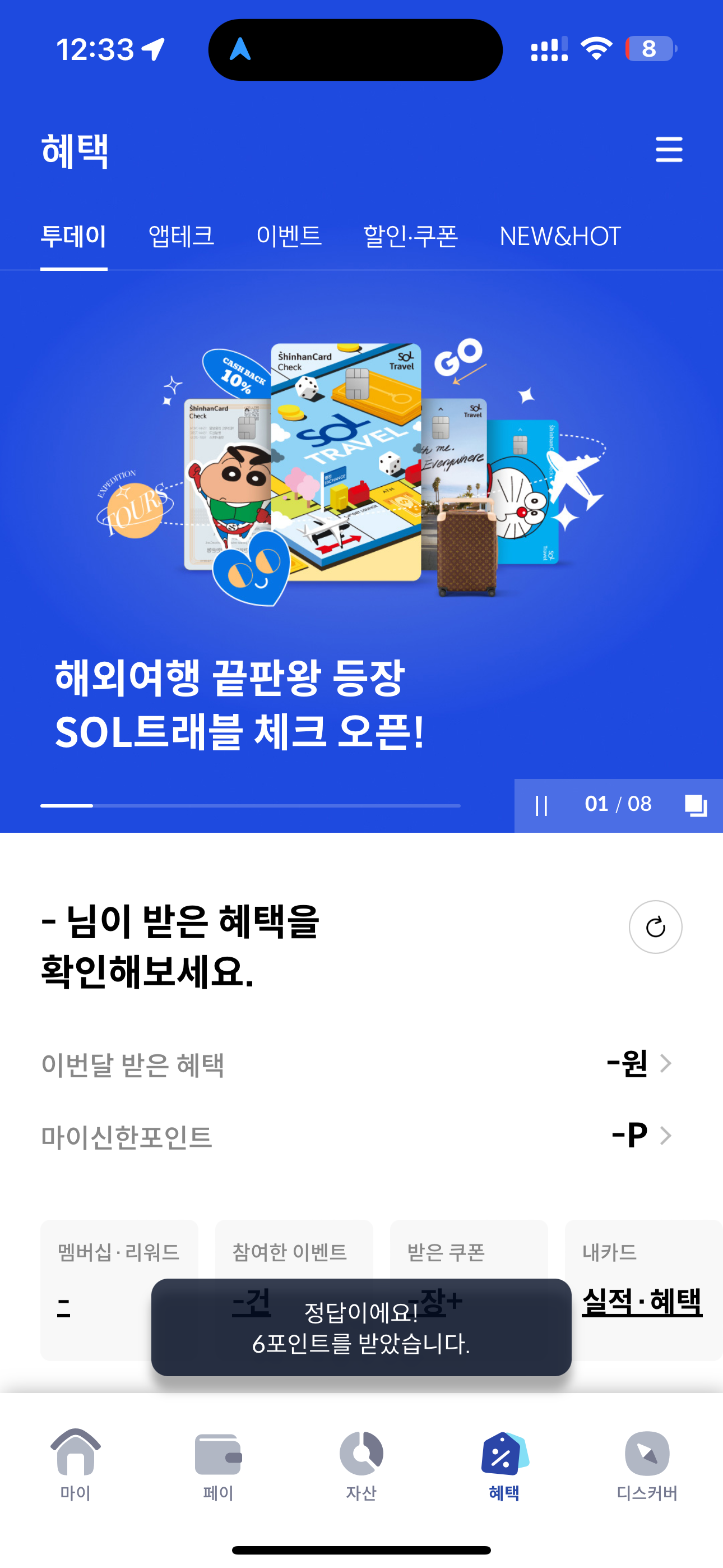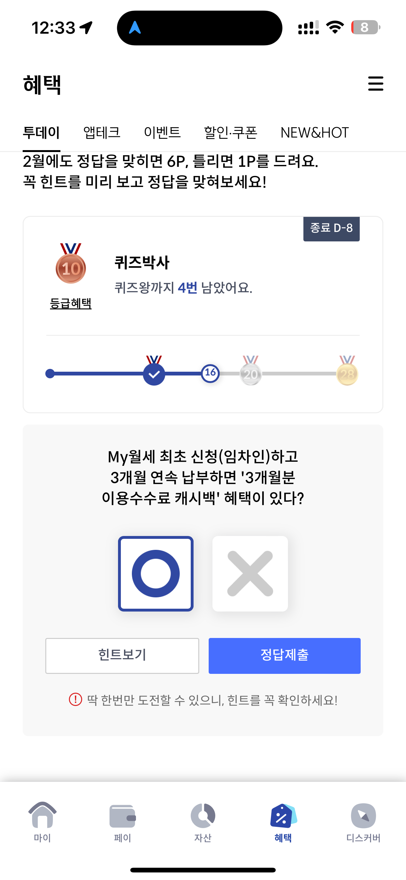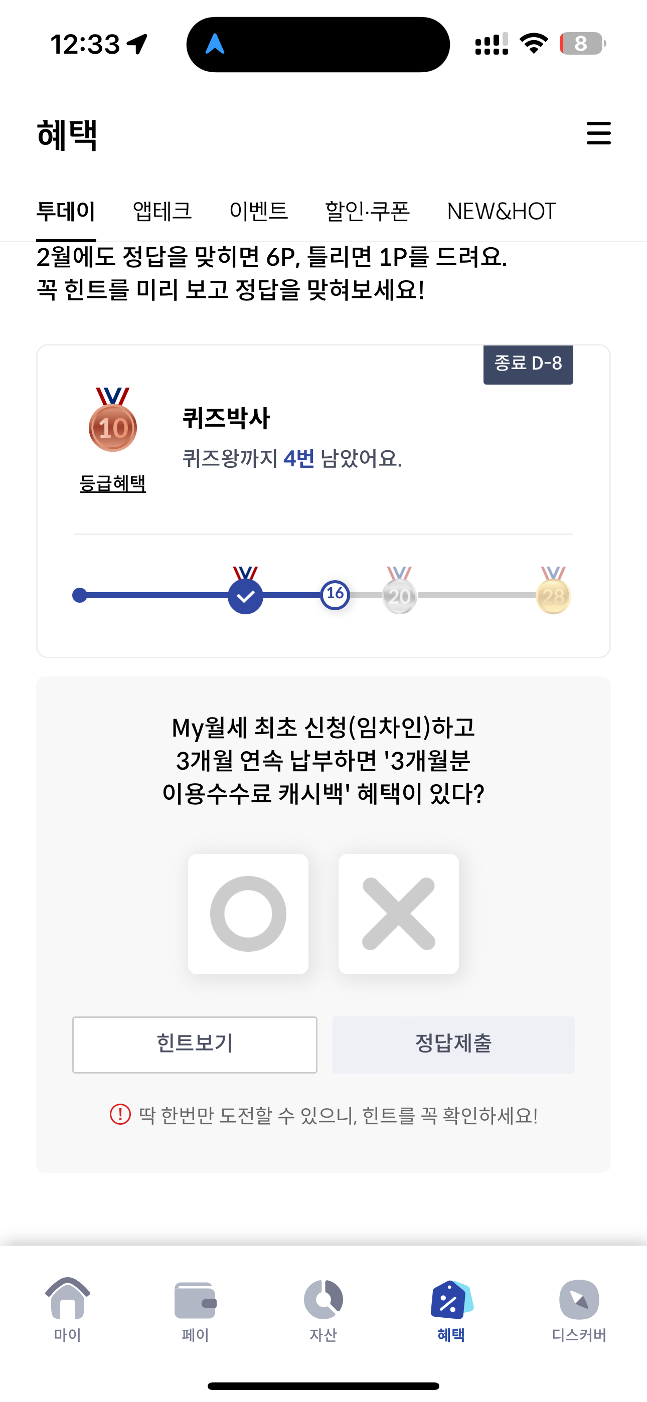 신한카드 퀴즈팡팡 정답은 O 입니다