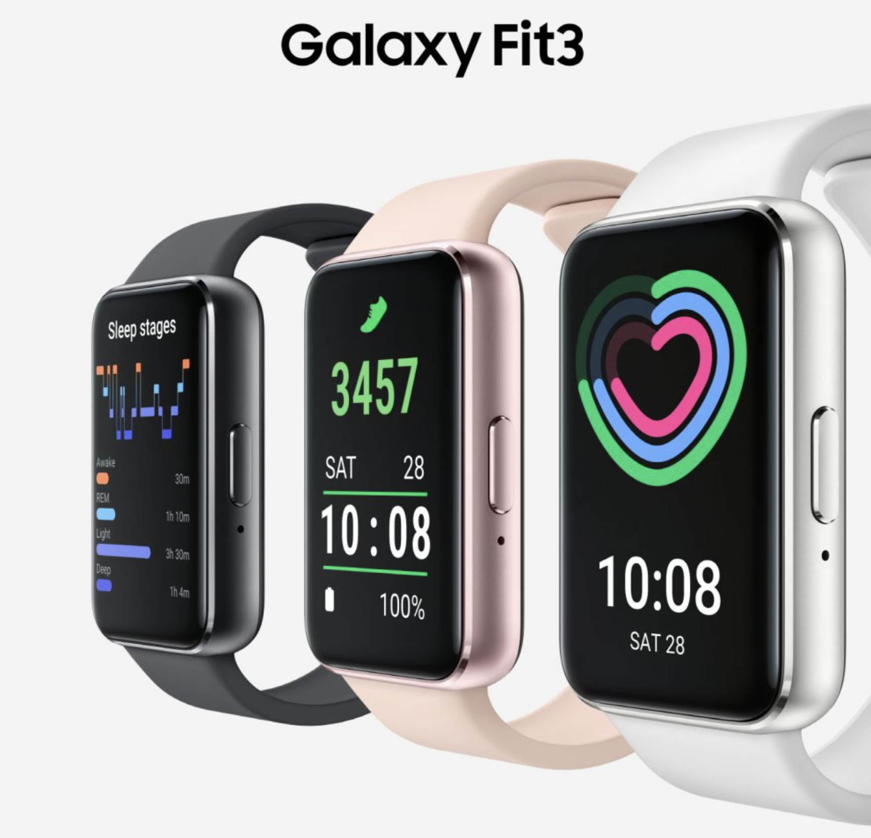 삼성 갤럭시핏3 색상은 실버, 핑크, 골드 3가지 색상으로 나오고 구주, 아시아, 중남미 등의 일부 국가에서 23일부터 순차 출시됩니다. 국내는 정확한 출시일은 공개하지 않고 향후 출시될 예정이라고 합니다.