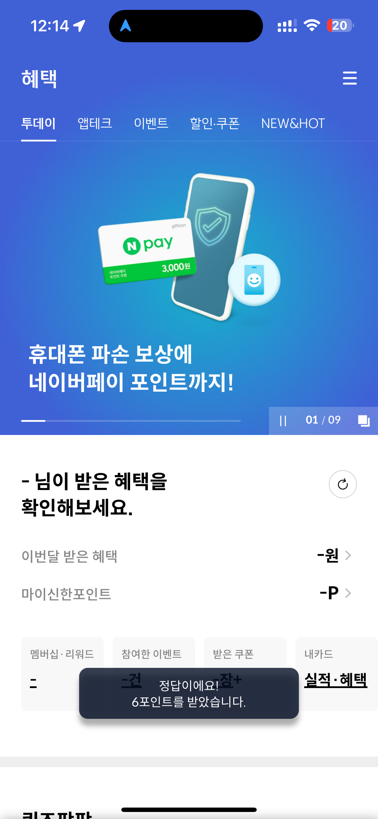 신한카드 퀴즈팡팡 정답은 O 입니다