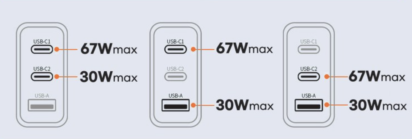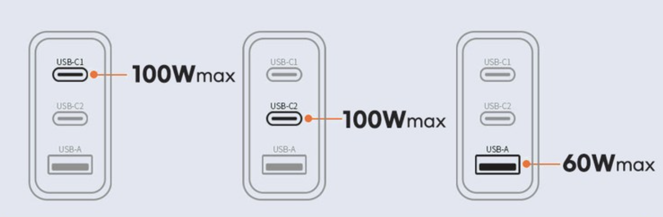 TOOCKI PD pps 100W 3포트 C타입 GaN 초고속 충전기 포트별 용량입니다. 최대 100W를 지원하는 것이니 3개를 동시에 사용하면 출력이 구분되서 나옵니다. 출력별 사용 방법을 잘 참고하셔서 활용하시면 됩니다.