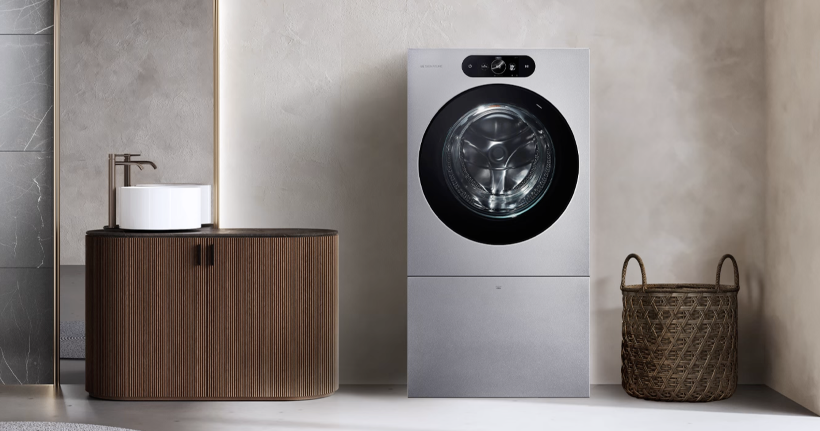 LG 시그니처 세탁건조기는 공간 활용성이 뛰어나기 때문에 하단에 4kg 용량의 미니워시를 탑재했습니다. 섬세한 의류나 기능성 의류, 속옷, 아이옷 등을 분리 세탁하기에 좋습니다.