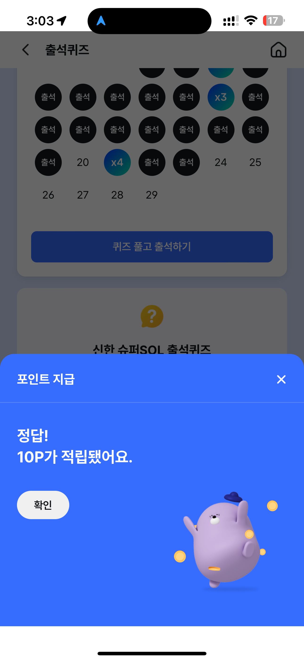 신한 슈퍼SOL 출석퀴즈 정답은 X 입니다