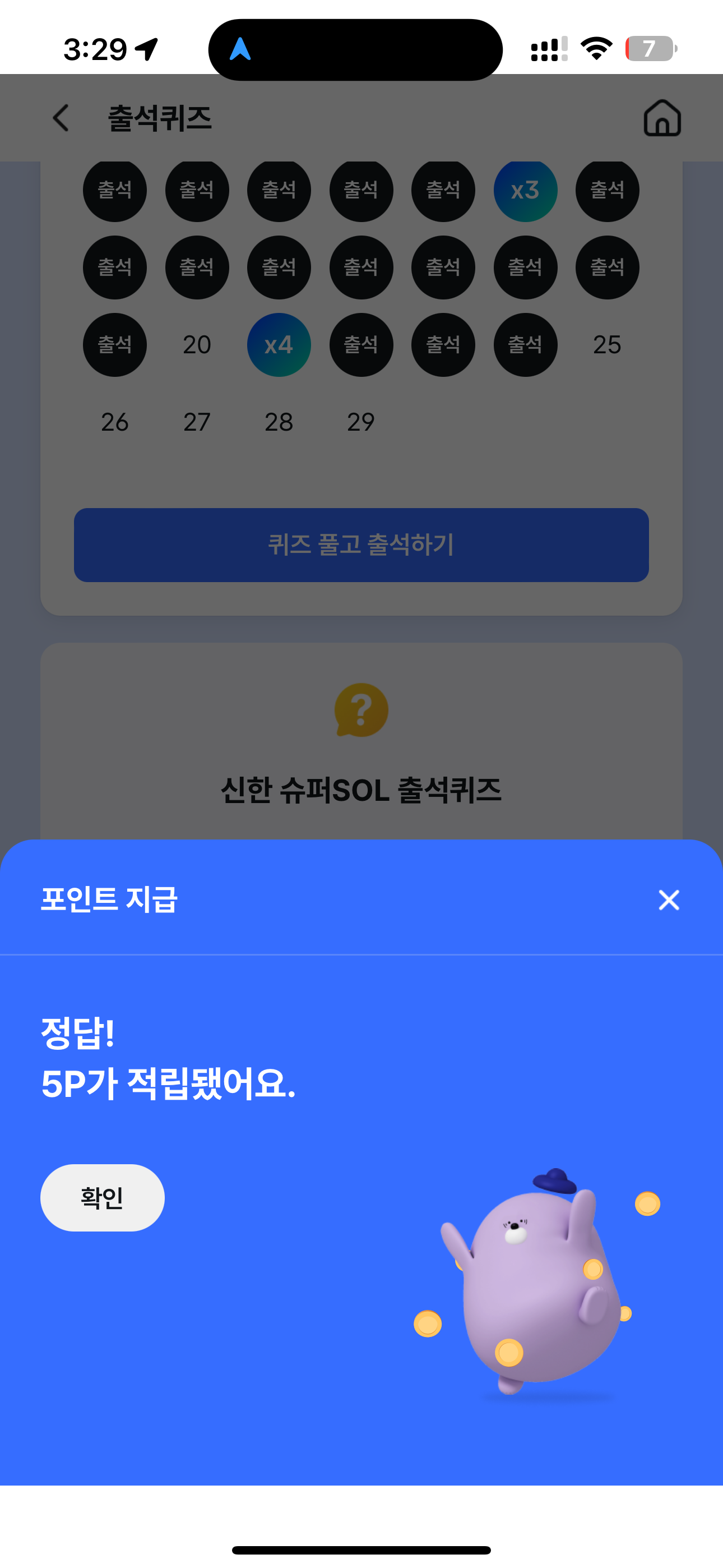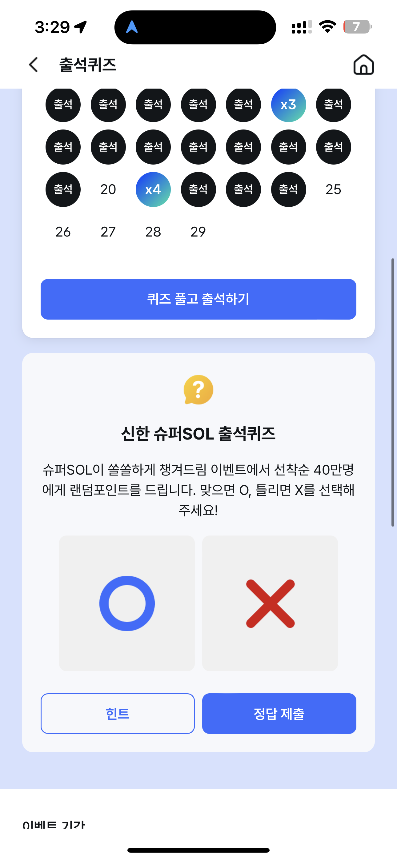 신한 슈퍼SOL 출석퀴즈 정답은 O 입니다
