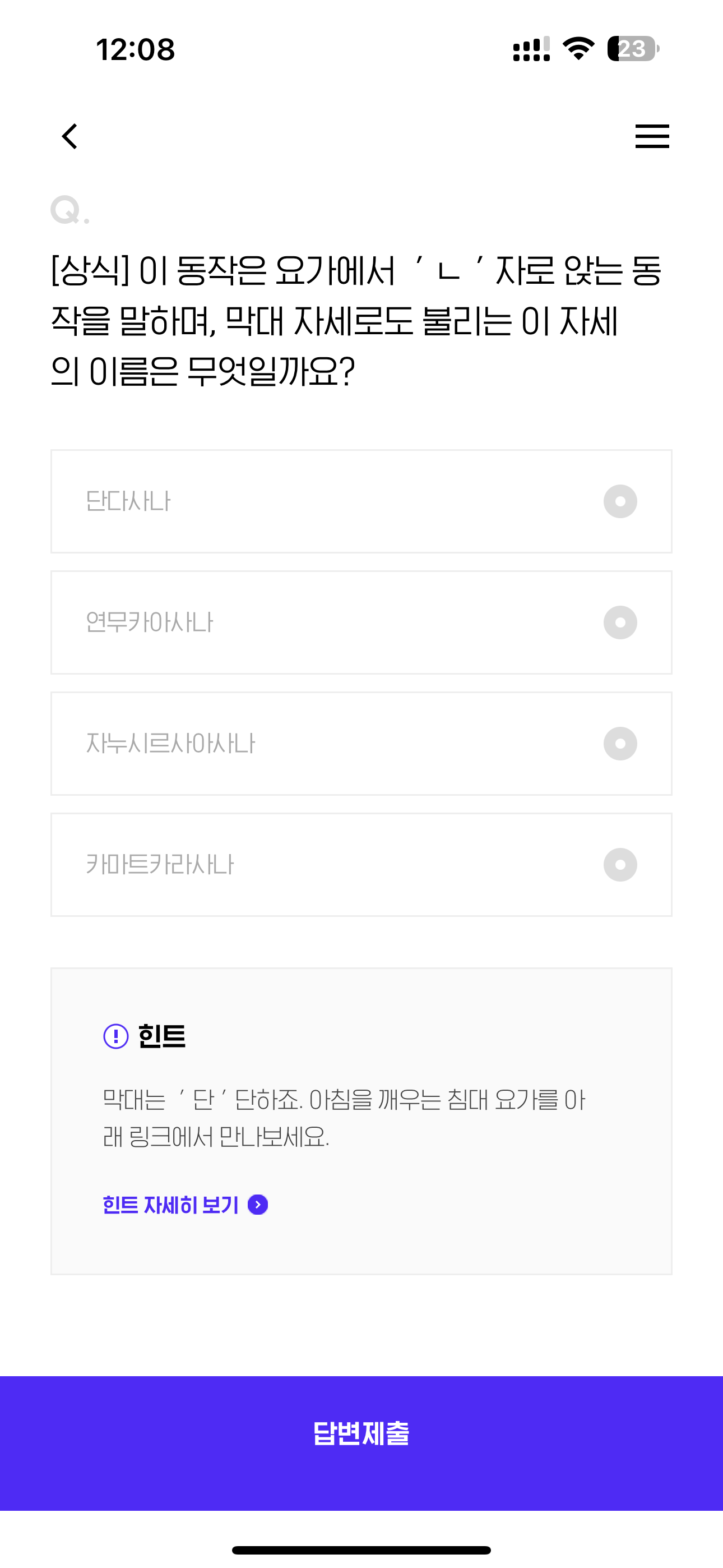 H포인트 퀴즈 2월 26일 정답(이 동작은 요가에서 ㄴ 자로 앉는 동작을 말하며, 막대 자세로도 불리는 이 자세의 이름은 무엇일까요?)