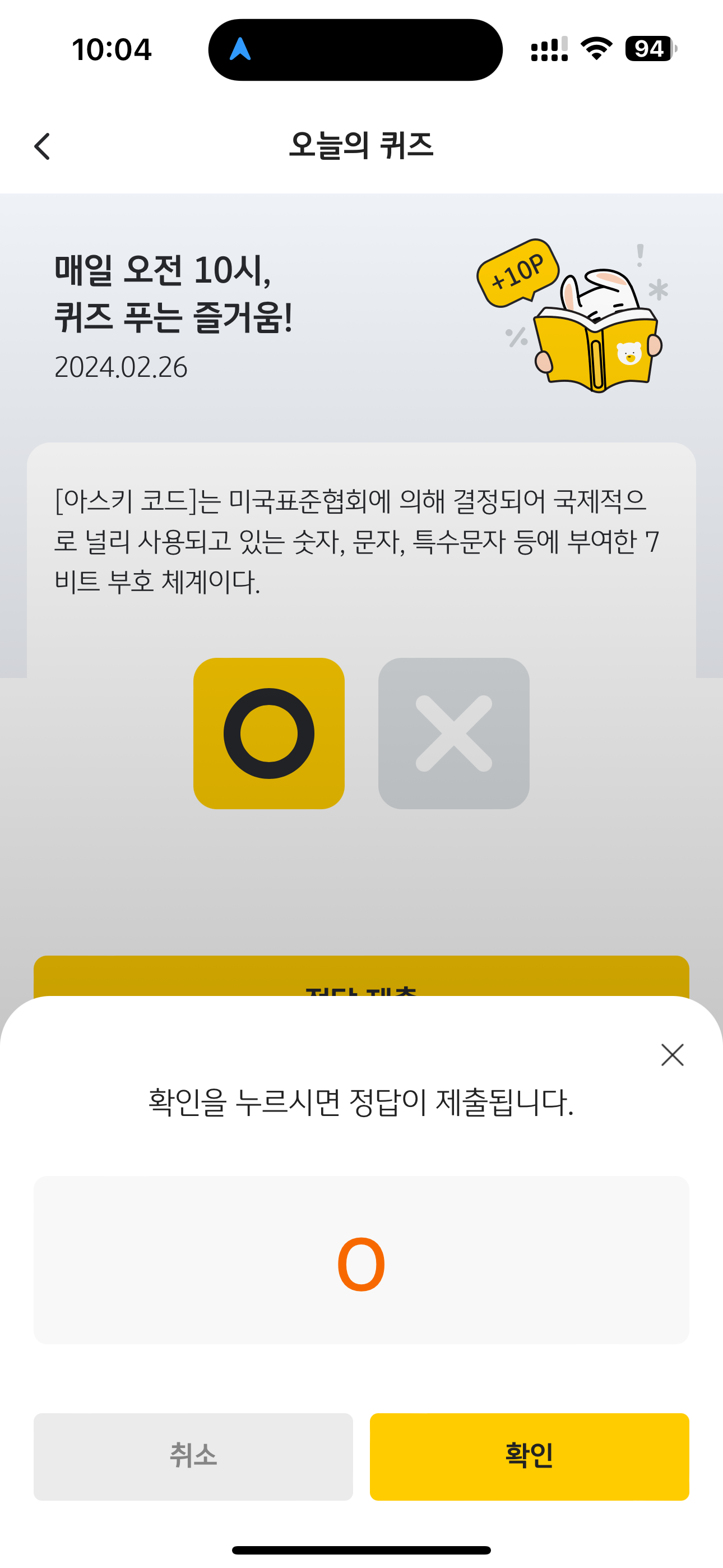 KB Pay 오늘의 퀴즈 2월 26일 문제입니다