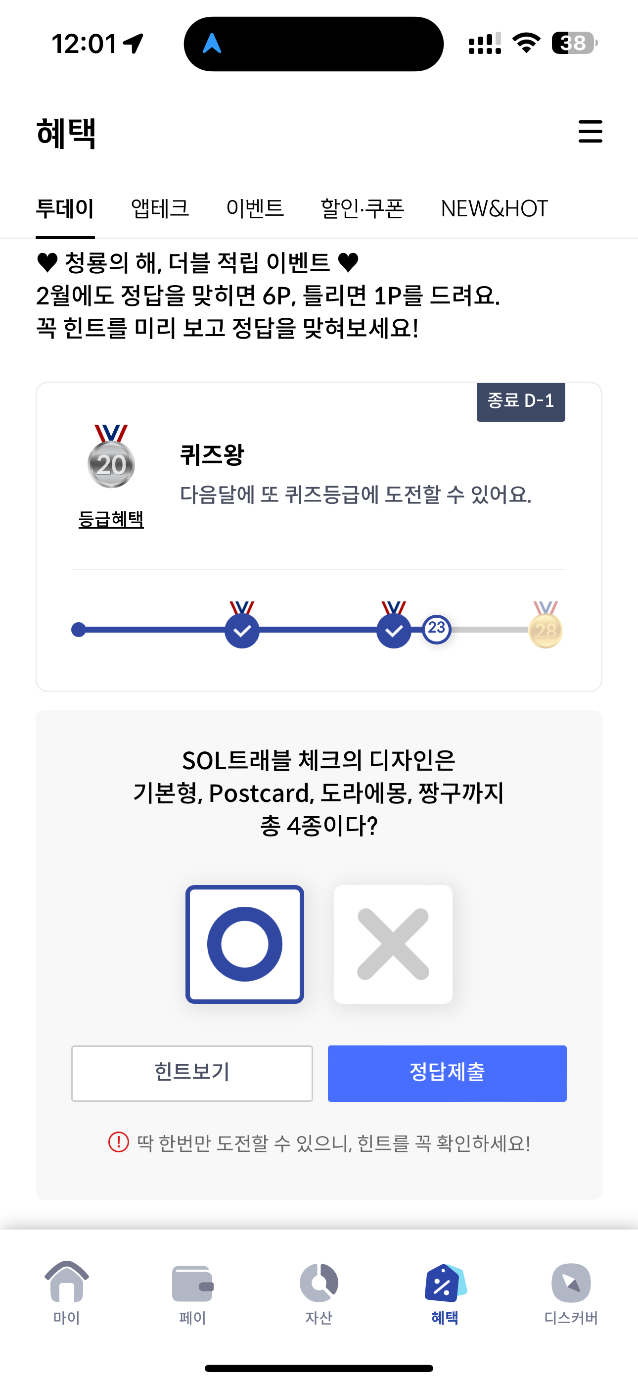 신한카드 퀴즈팡팡 2월 28일 문제입니다