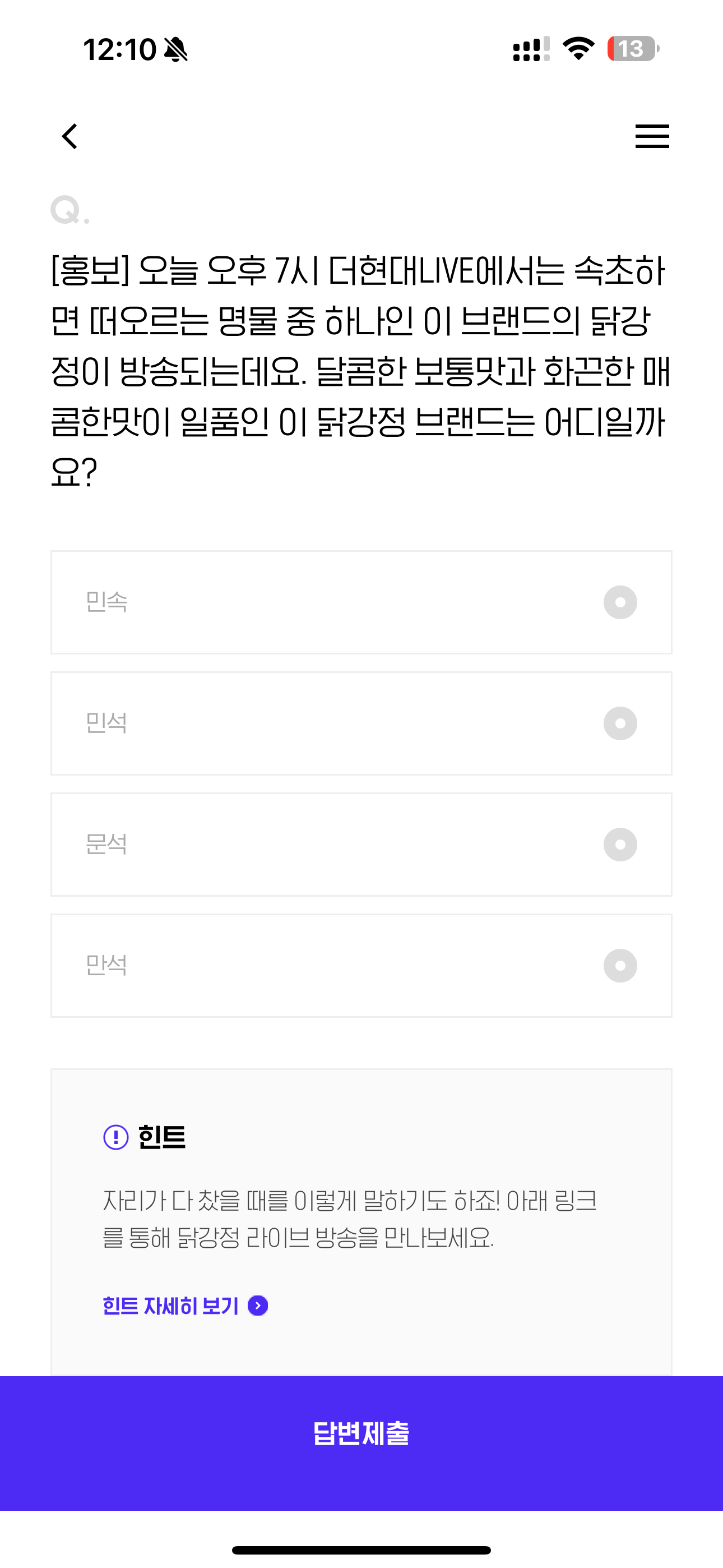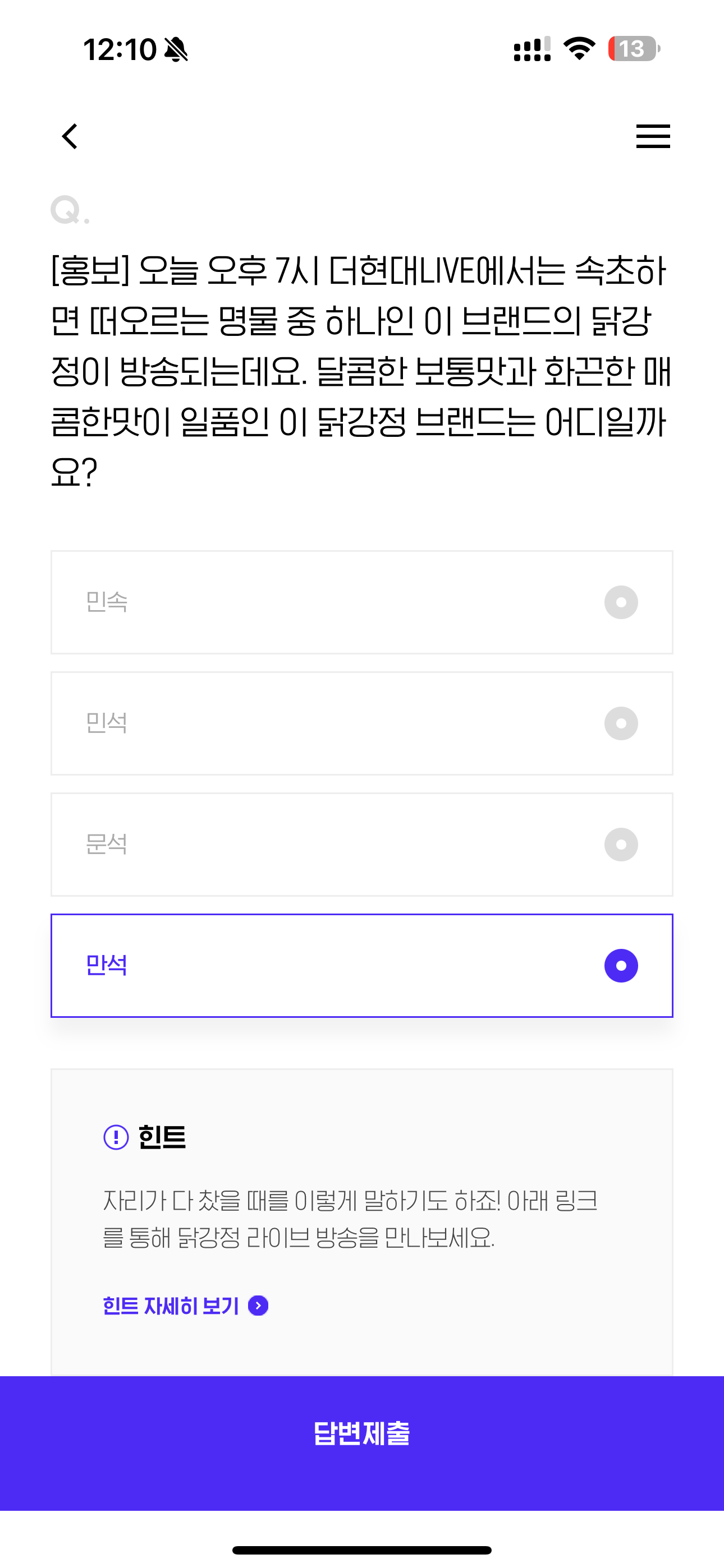 H포인트 퀴즈 정답은 만석 입니다