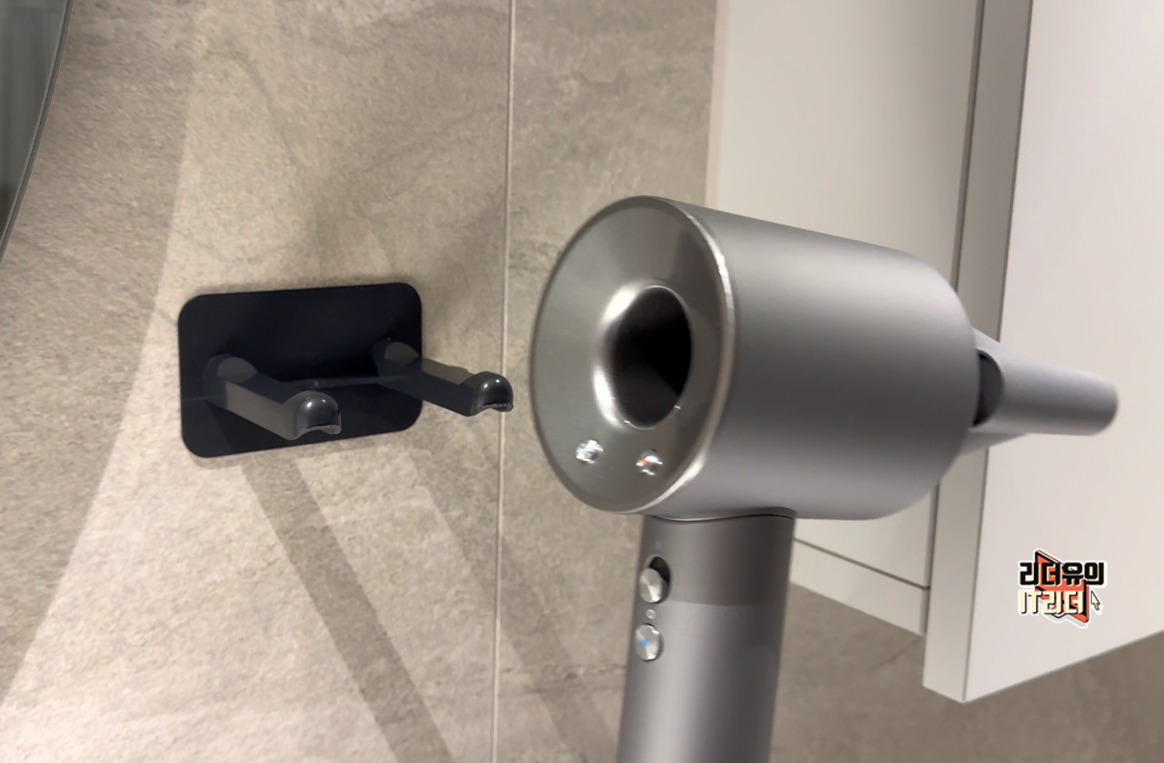 욕실에 부착을 한 모습입니다. 깔끔한 거치와 사용을 할 수 있습니다.