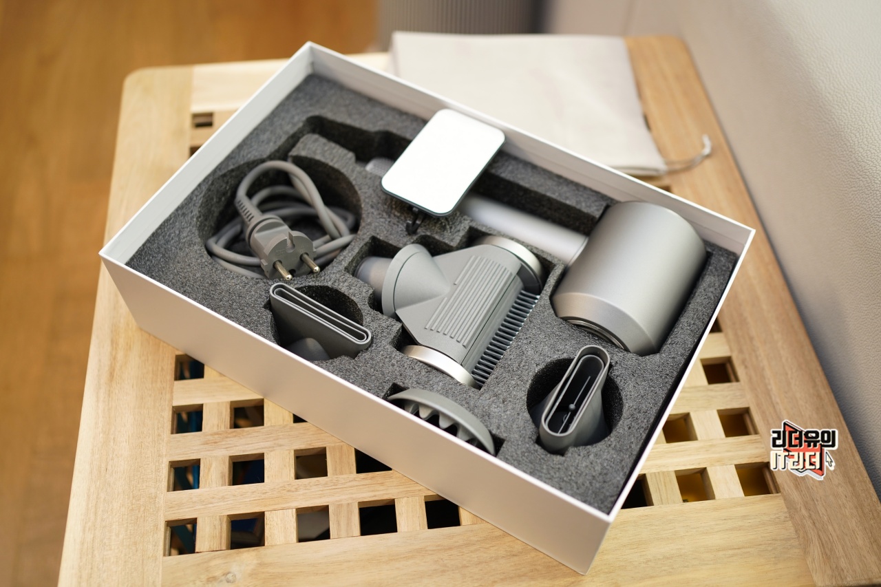 차이슨 슈퍼소닉 헤어드라이기 구성품을 보면 진짜 다이슨 슈퍼소닉 같습니다. 노즐들도 다양하고 본체 퀄리티는 상당히 좋습니다.