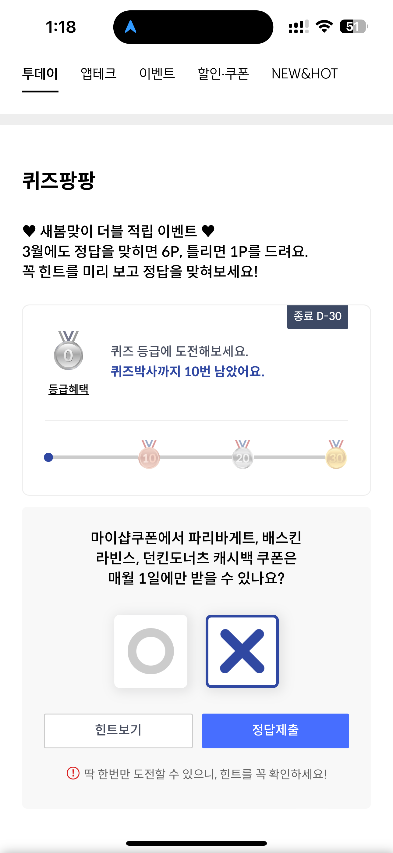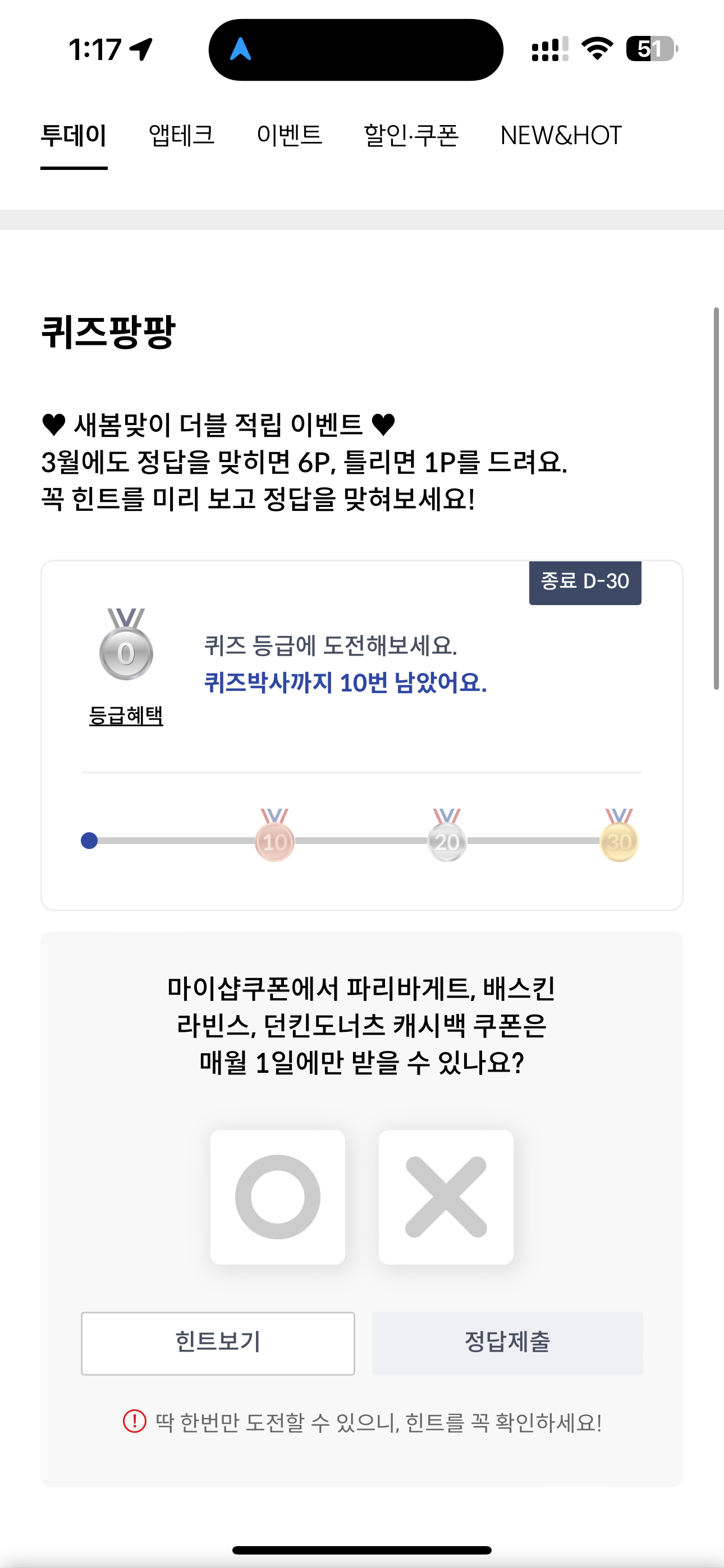 마이샵쿠폰에서 파리바게트, 배스킨라빈스, 던킨도너츠 캐시백 쿠폰은 매월 1일에만 받을 수 있나요? O, X 퀴즈인데요. 마이샵쿠폰은 매달 주어지는 혜택이니 꼭 챙겨볼 필요가 있습니다. 이 외에도 정말 다양한 쿠폰들이 있으니 꼭 확인해 보시기 바랍니다.