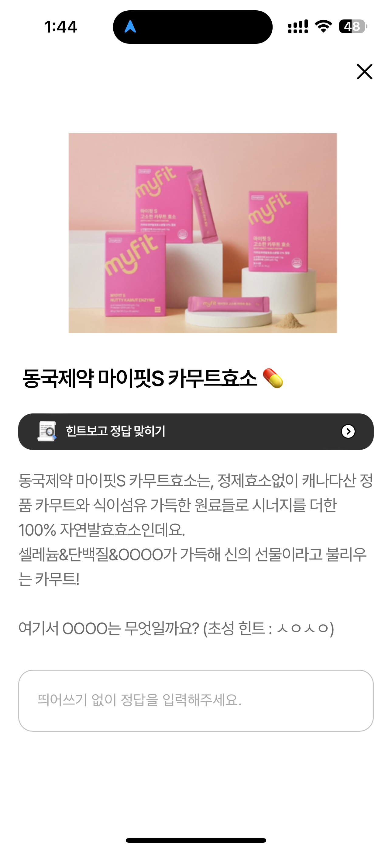 나만의닥터 퀴즈 3월 1일 동국제약 마이핏S 카무트효소 문제입니다