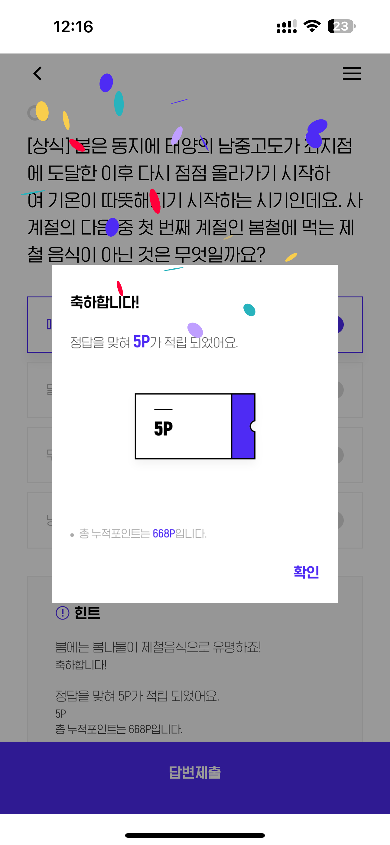H포인트 퀴즈 3월 3일 정답(봄은 동지에 태양의 남중고도가 최지점에 도달한 이후 다시 점점 올라가기 시작하여 기온이 따뜻해지기 시작하는 시기인데요)