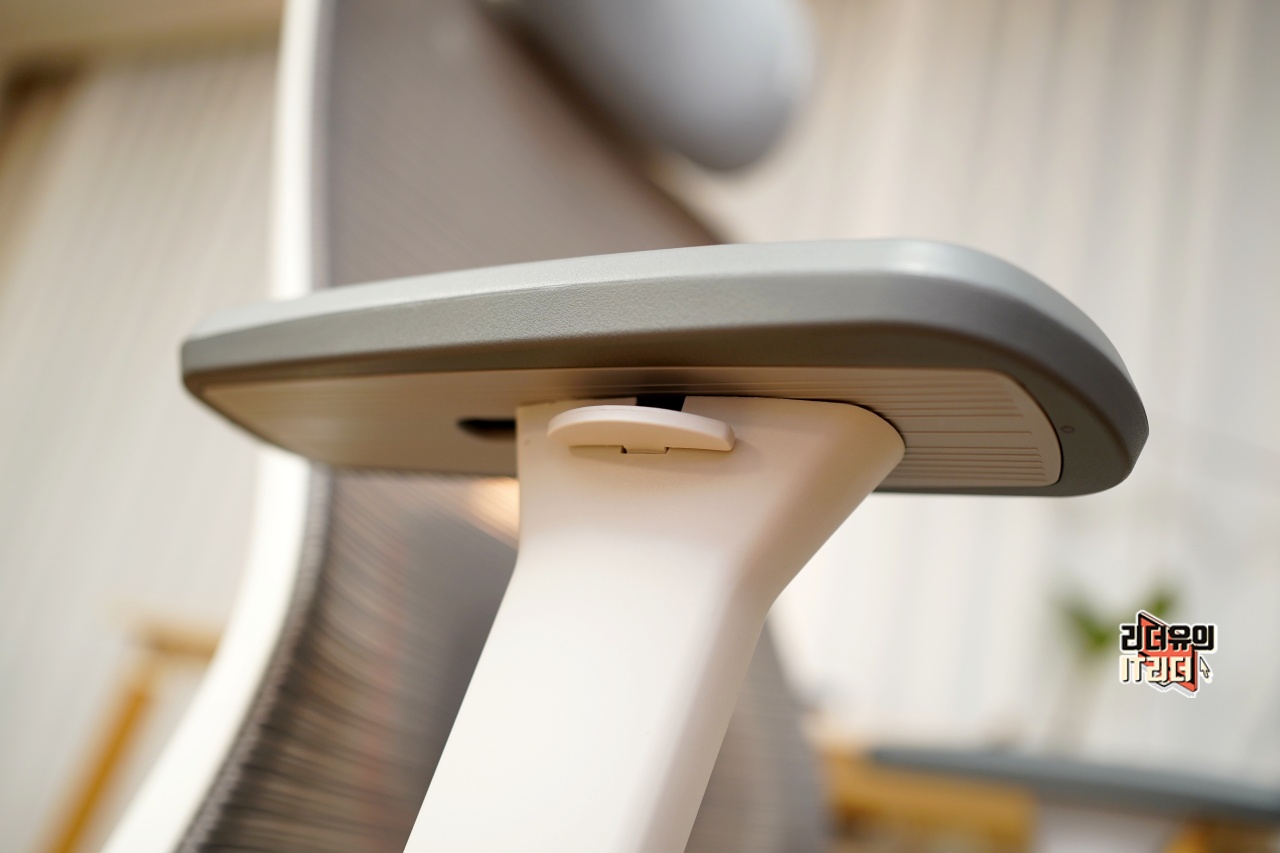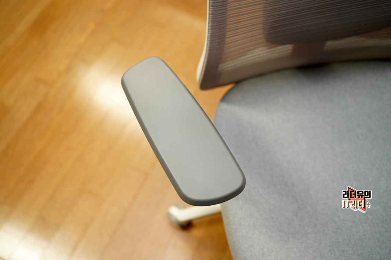 아래에서 보면 앞뒤 레일이 보이죠. 암레스트 위치를 앞뒤로 조절해 편안한 위치에 두고 사용할 수 있습니다.