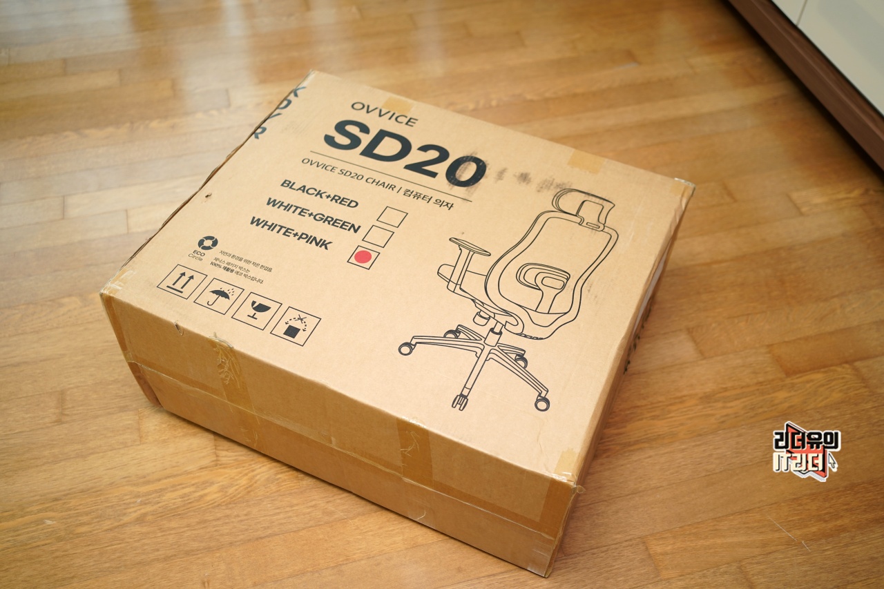 제닉스 오비스 SD20 메쉬 의자가 배송되어 온 패키지 입니다. 전면에 자신이 선택한 색상 표시가 나와 있습니다. 저는 화이트 + 핑크 색상을 선택했는데요.