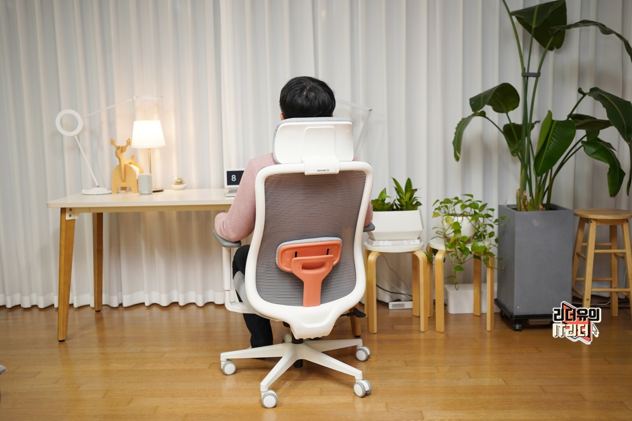 제가 앚았을때 모습입니다. 허리를 밀어주니 자세를 잡는데 많은 도움이 되고 허리를 단단하게 펴주니 더욱 편안한 착좌감을 느낄 수 있습니다. 사무용 의자, 사무용 컴퓨터 의자, 허리 편한 의자로 정말 좋은 선택이라 할 수 있습니다.