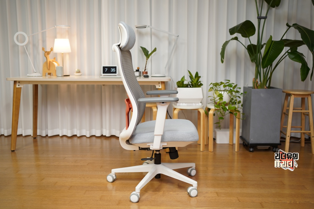 그리고 높낮이 조절 가능하고 싱크 틸팅 시스템이 적용되어 있습니다. 싱크 틸팅 시스템은 등판을 기댈 때 하판이 최적의 각도로 함께 틸팅 되어 안정적인 자세를 만들어주는 기능입니다.