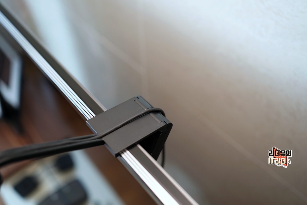 TV 상단에 카메라 마운트를 설치한 모습입니다.