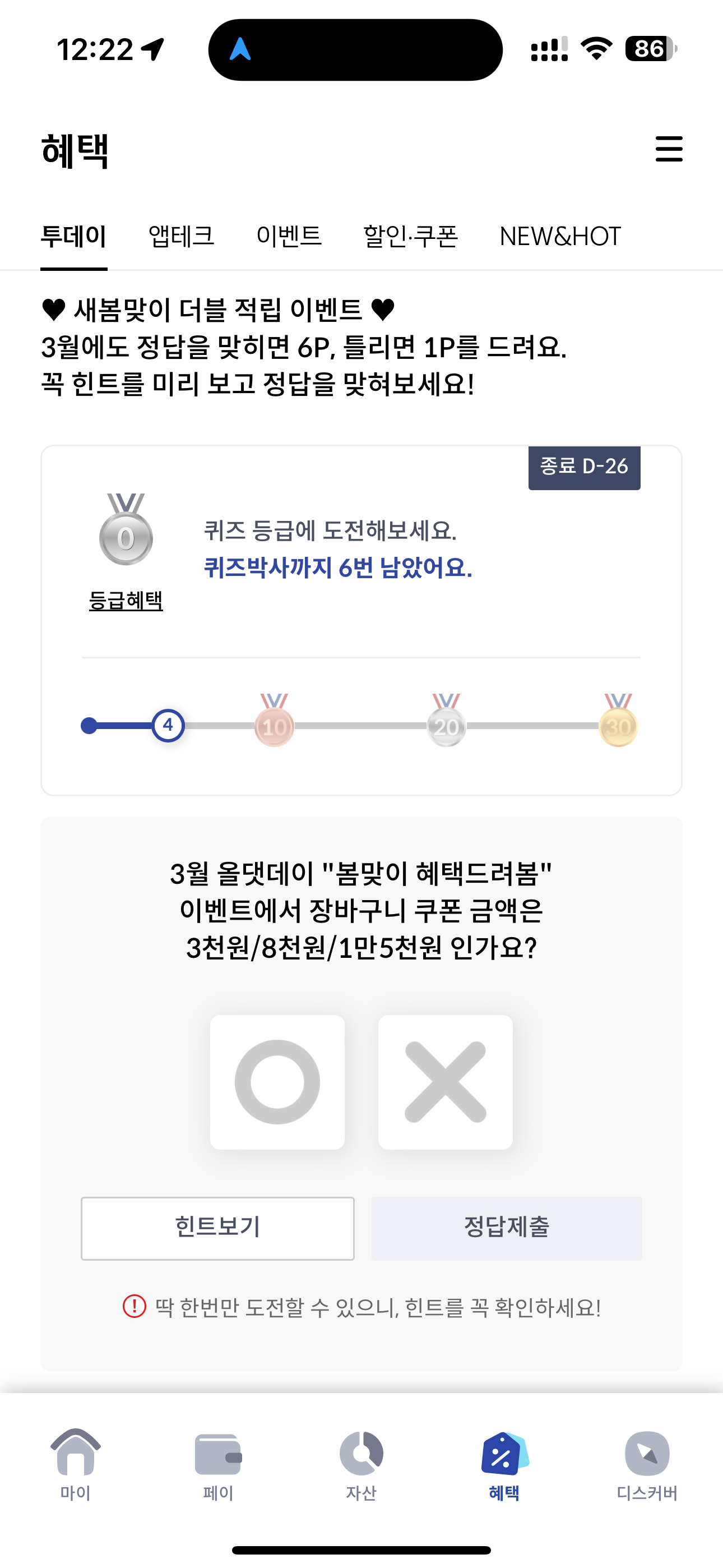신한카드 퀴즈팡팡 3월 5일 정답(3월 올댓데이 봄맞이 혜택드려봄 이벤트에서 장바구니 쿠폰 금액은 3천원/8천원/1만5천원 인가요?)