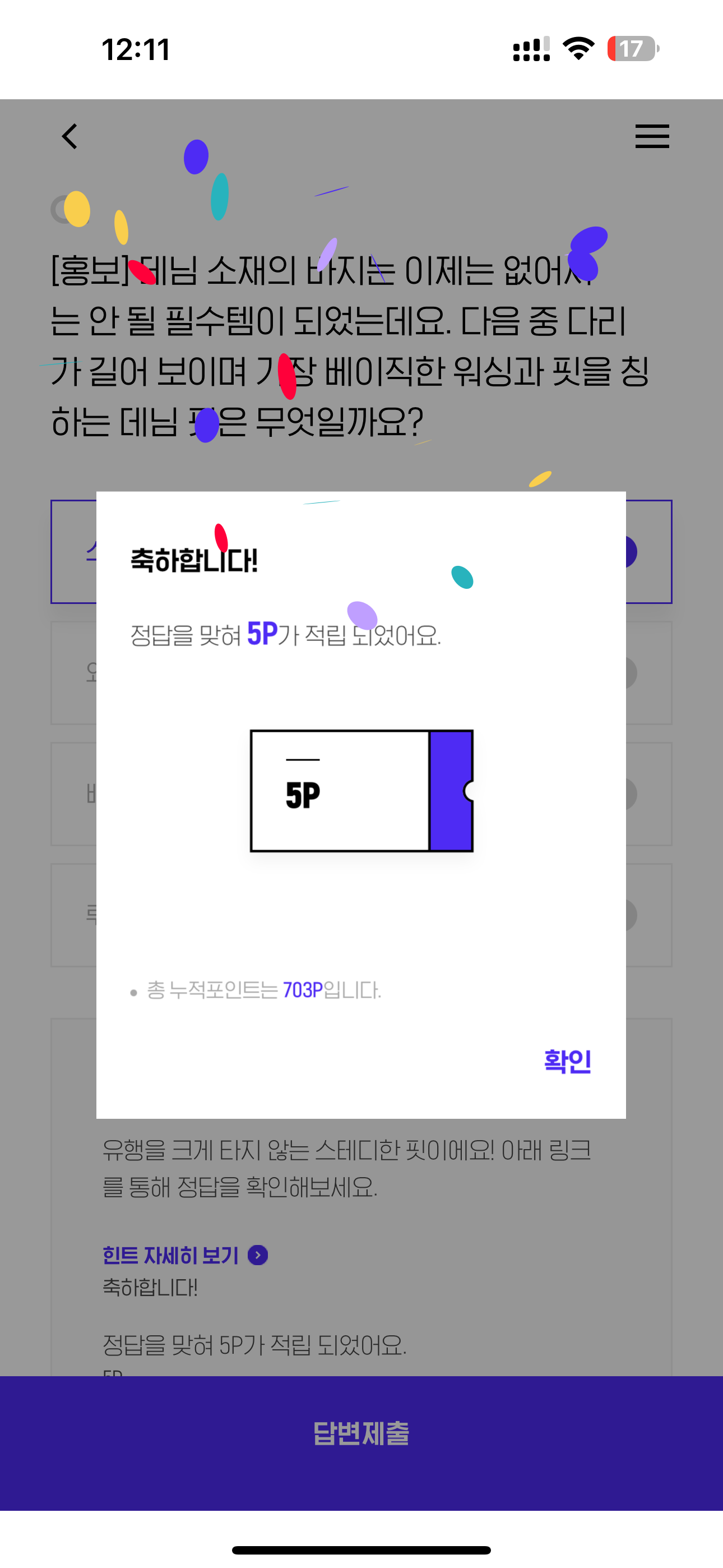 H포인트 퀴즈 정답은 스트레이트 핏 입니다