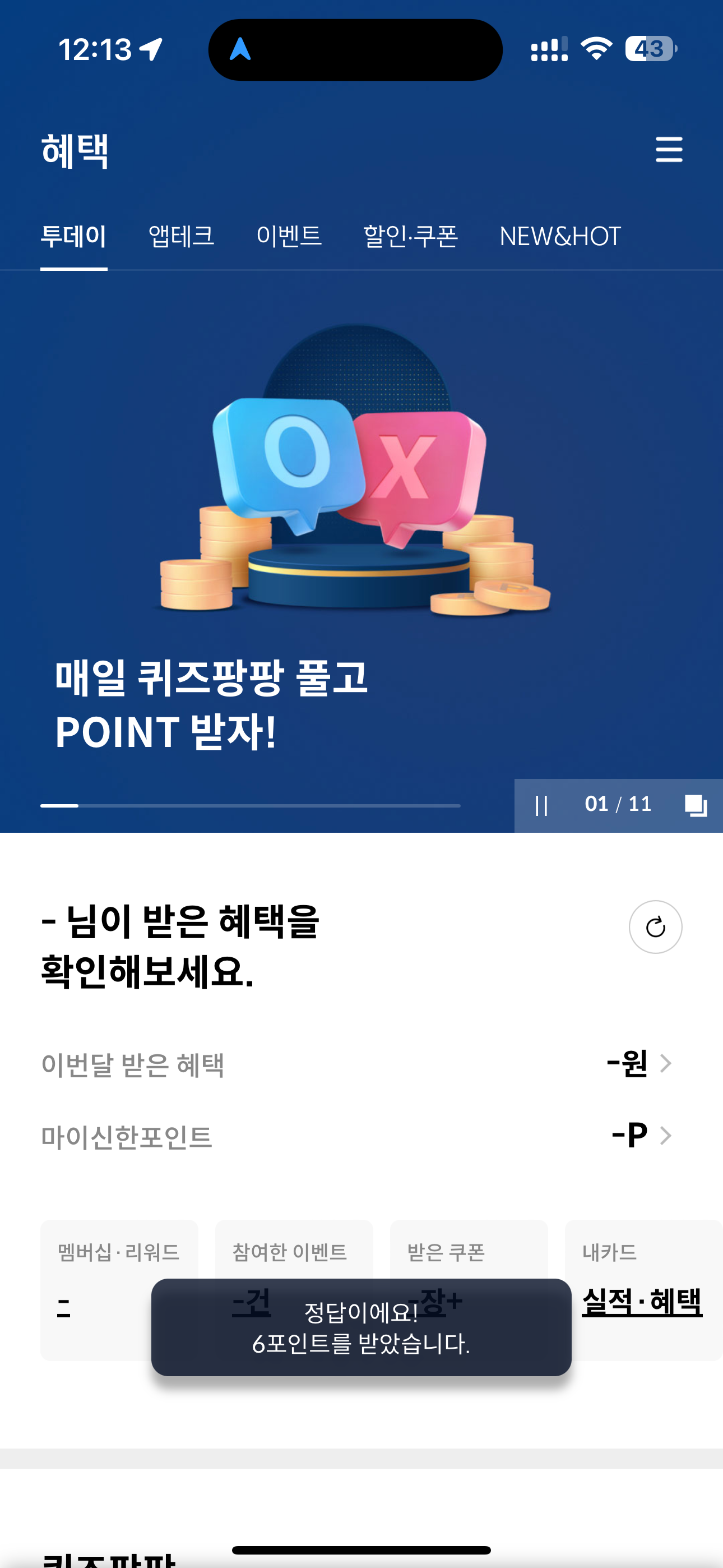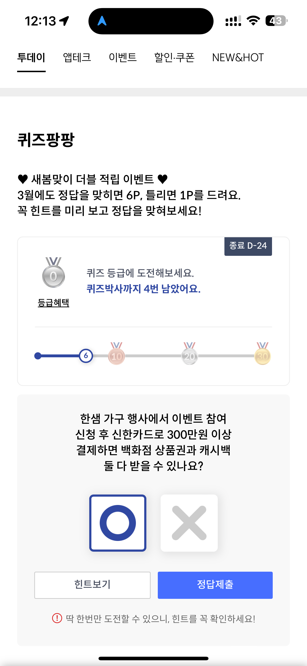 신한카드 퀴즈팡팡 정답은 O 입니다
