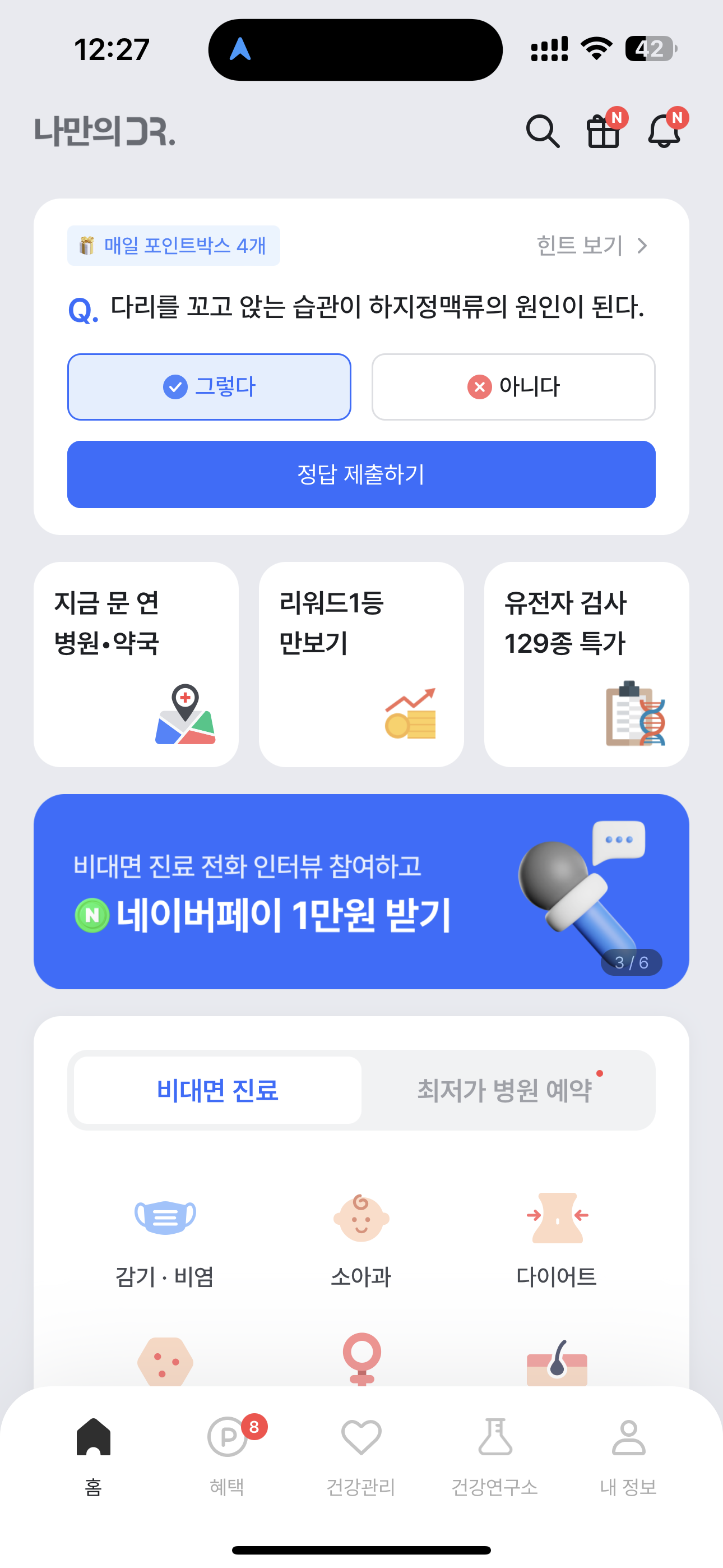나만의닥터 퀴즈 정답은 그렇다 입니다