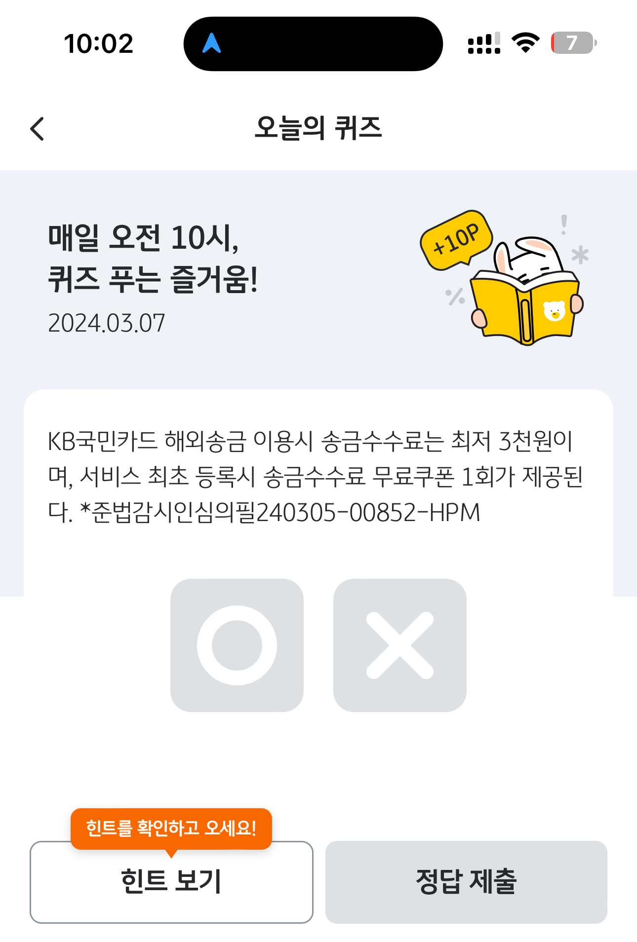KB Pay 오늘의 퀴즈 3월 7일 문제입니다