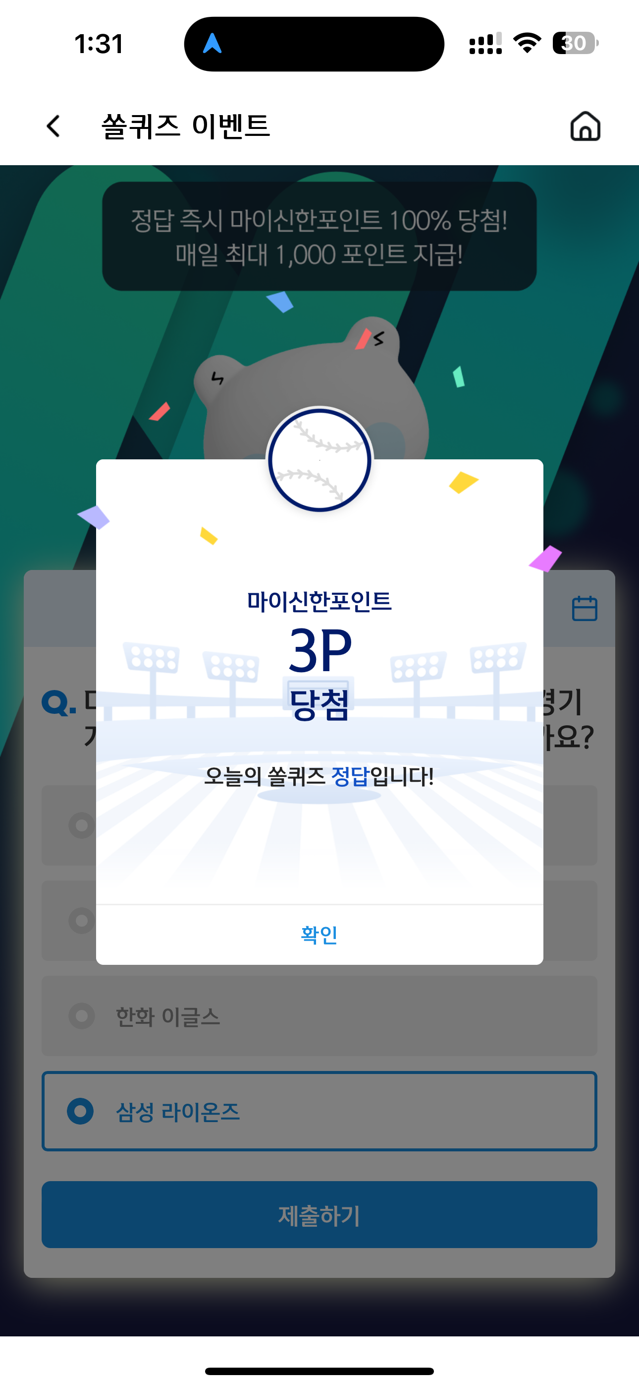 신한 슈퍼SOL 야구/상식 쏠퀴즈 정답은 삼성 라이온즈 입니다
