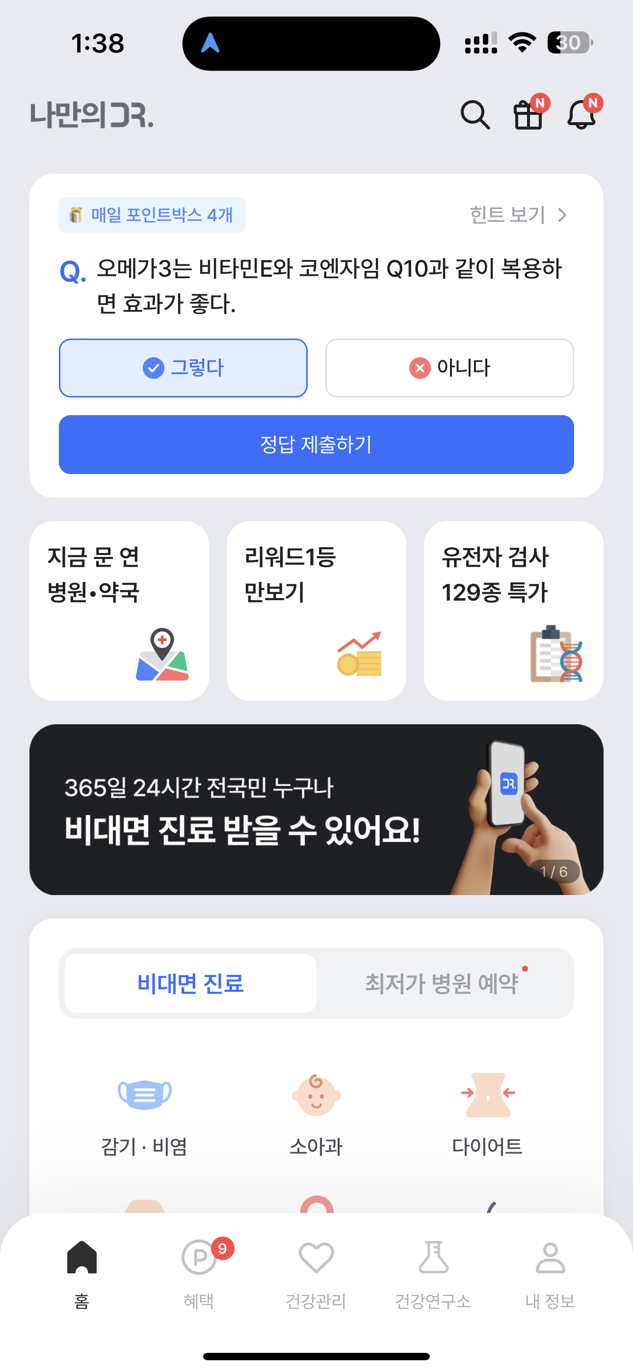 나만의닥터 퀴즈 정답은 그렇다 입니다