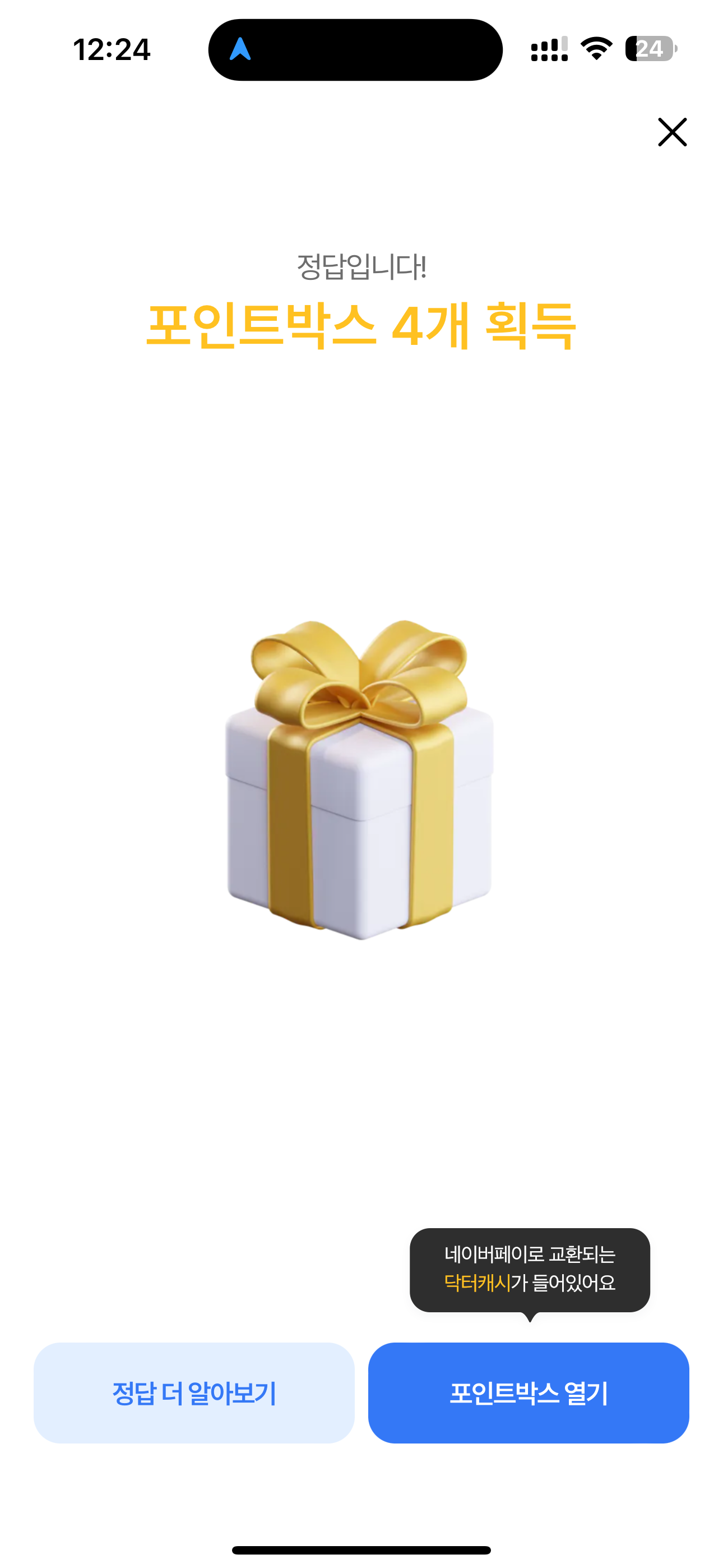 포인트박스 4개를 획득했습니다. 포인트박스는 네이버페이로 교환 가능하니 꼭 받으시고요. 여러분의 재테크를 응원합니다
