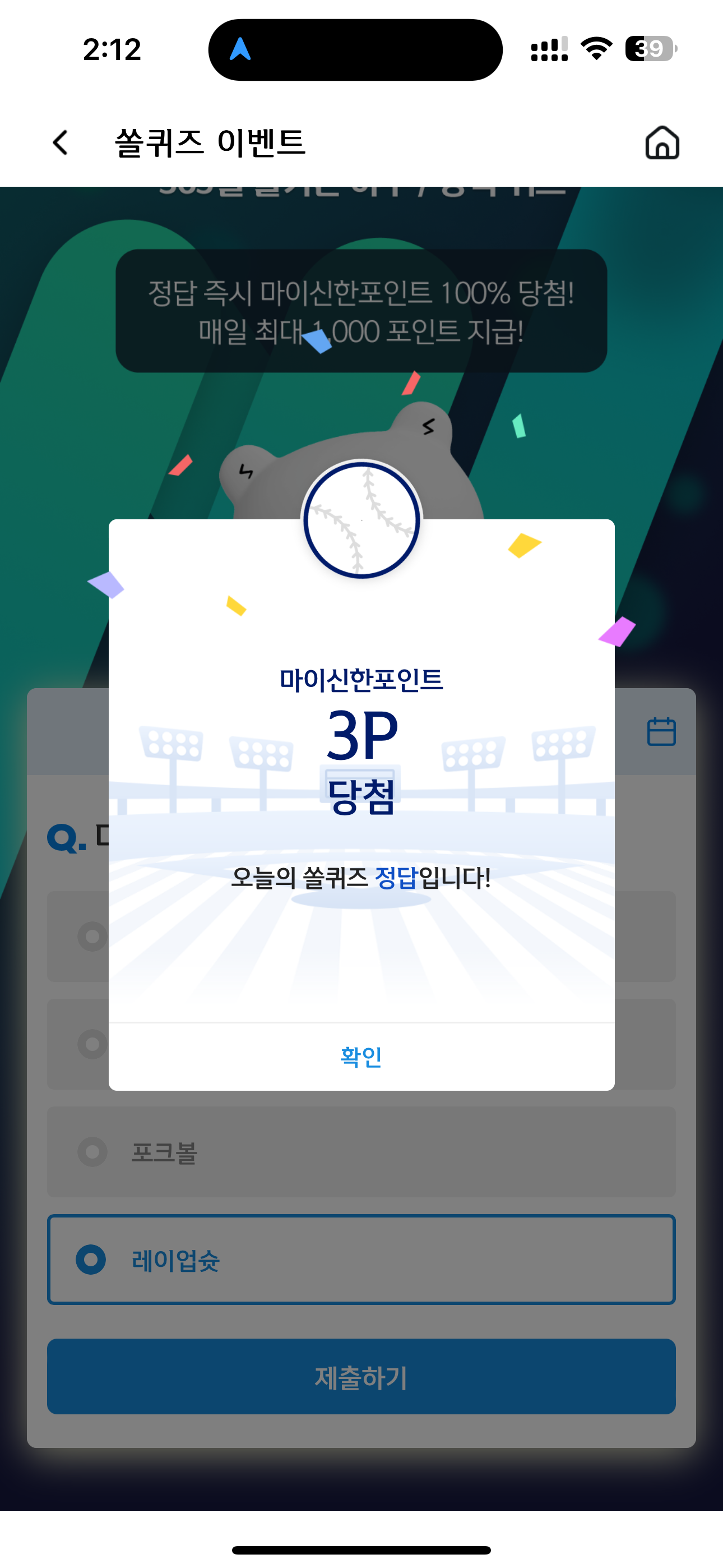 신한 슈퍼SOL 야구/상식 쏠퀴즈 정답은 레이업슛 입니다